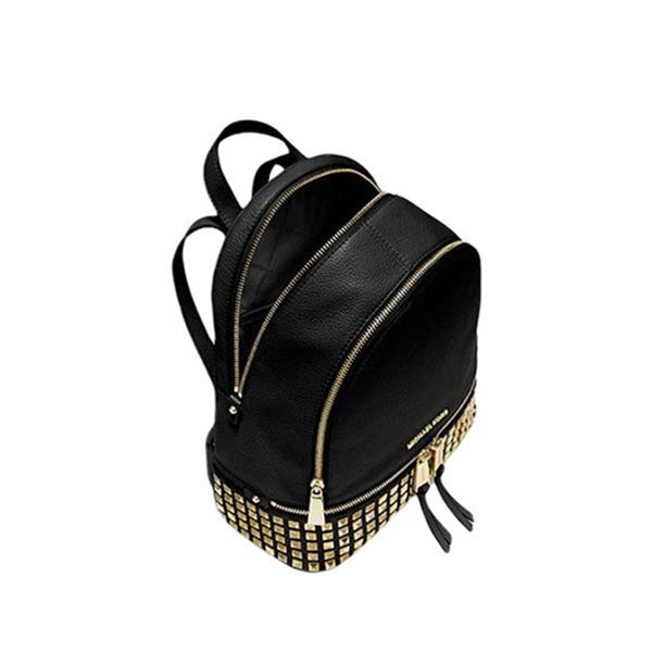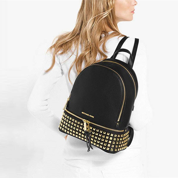 此款Michael Kors Rhea Zip雙肩背包慵懶雅緻,金色的鉚釘設計為它注入調皮的朋克風,荔枝紋牛皮革與亮麗的五金細節相輔相成。mk 雙肩包包身設有拉鏈隔袋和兩條精美的肩帶,經久耐用之餘又透露一絲新鮮與活力。