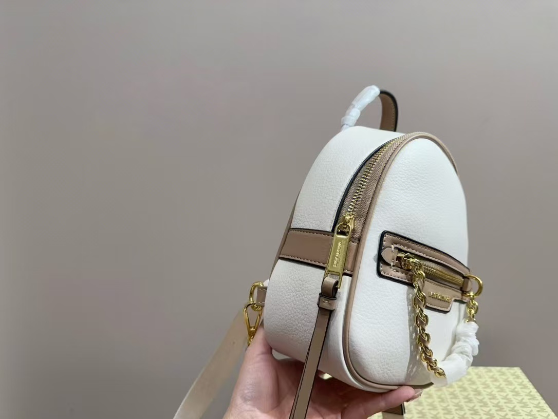 Michael Kors MK 簡潔大方 Elliot雙肩包,以其極簡的設計風格,展現出時尚與實用的完美平衡。白色的皮革材質光滑細緻,散發出高雅的質感,無論搭配休閒或正式服裝,都能輕鬆營造出摩登氛圍。mk 雙肩包的設計注重實用性,內部空間寬敞,能夠輕鬆收納手機、錢包、化妝品等日常必需品,並配有多個隔層,讓物品整理更加方便。精緻的MK標誌裝飾於包面,細節處彰顯品牌格調。這款michael kors 包包是您日常出行的理想選擇,既能提供極致的舒適感,又能提升您的時尚品味。