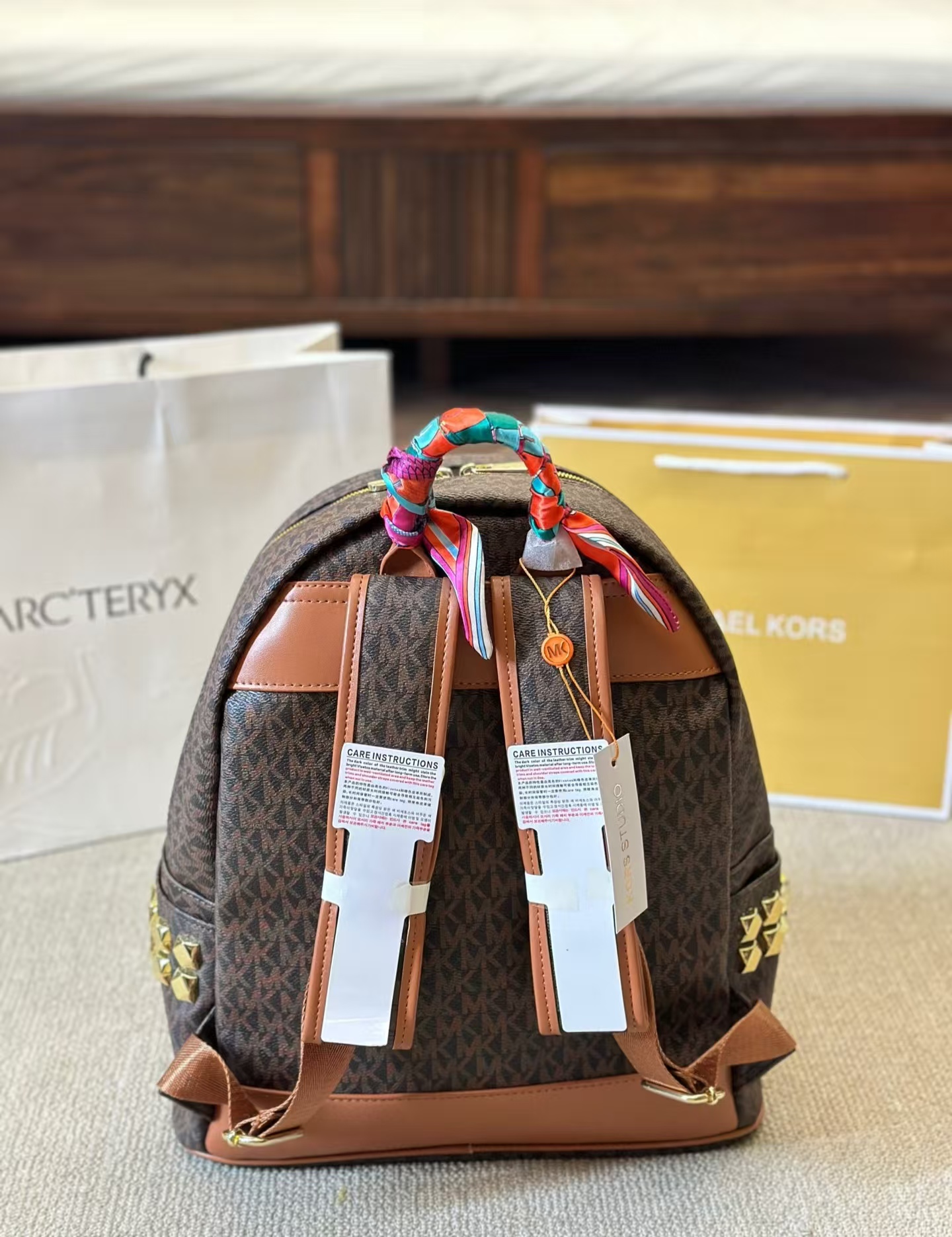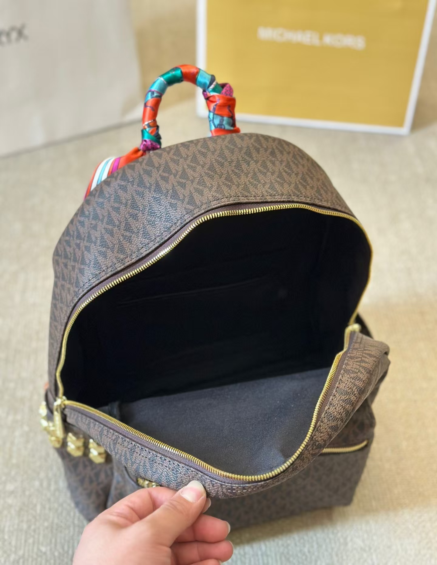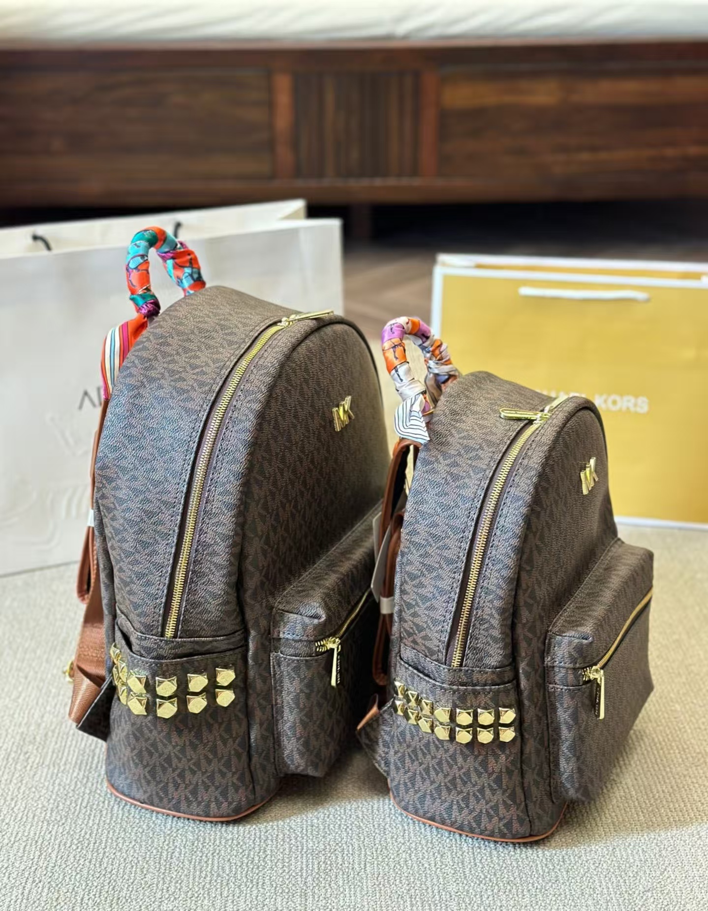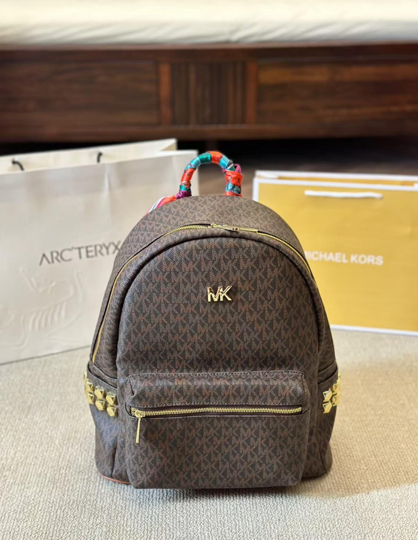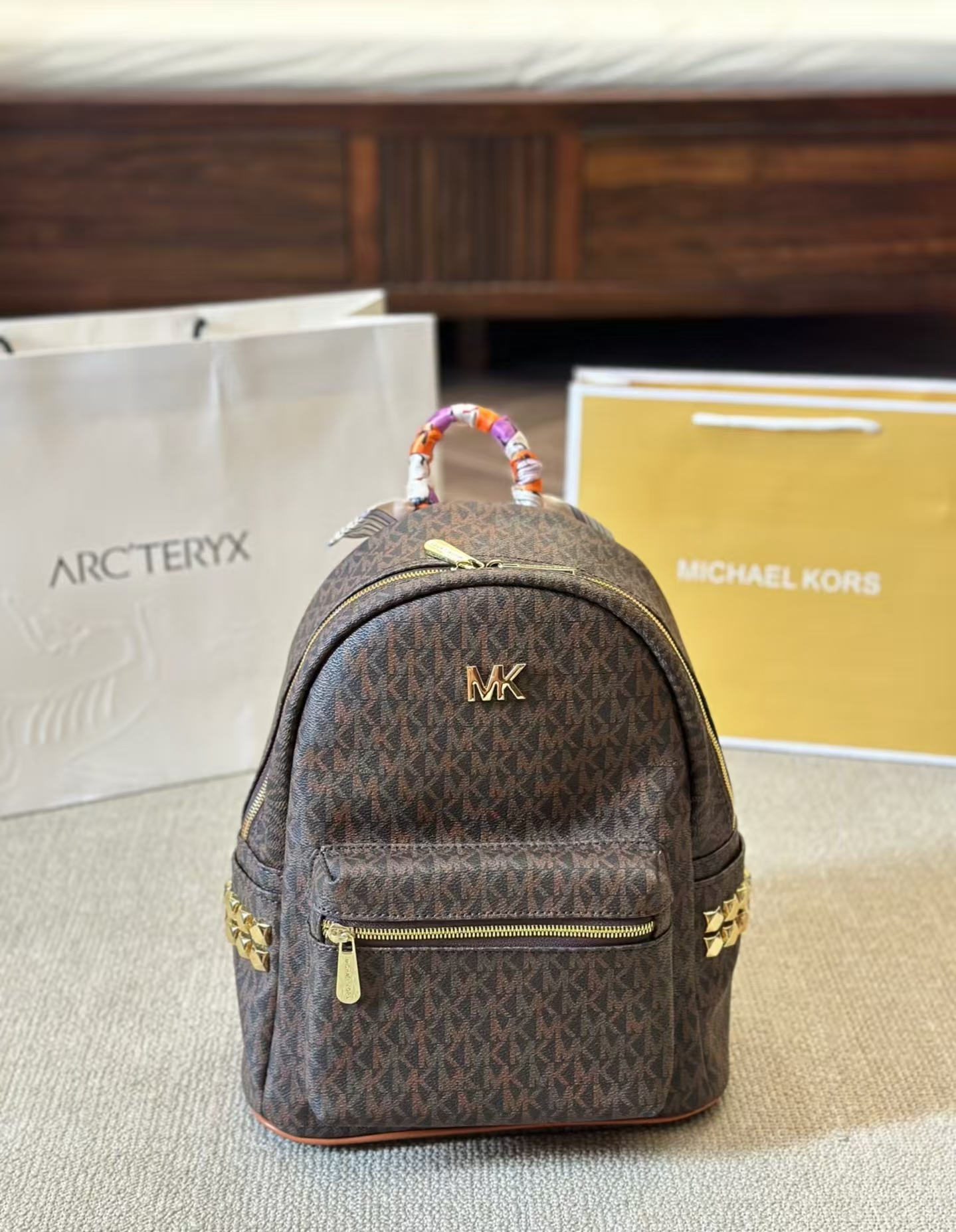 Michael Kors MK棕色新款雙肩包,以整包LOGO設計展現品牌經典魅力,簡約時尚又不失個性。精選優質皮革材質,耐磨耐用,包身顏色低調百搭,適合各種場合穿搭。內部設計合理,空間寬敞,方便分類存放隨身物品,如手機、鑰匙和錢包。mk 後背包可調節雙肩帶設計,舒適實用,兼顧時尚感與功能性。金屬配件與精致拉鏈點綴,細節考究,為整體增添質感。無論是日常通勤還是出行旅行,這款百搭雙肩包都是實用與美觀的絕佳選擇。