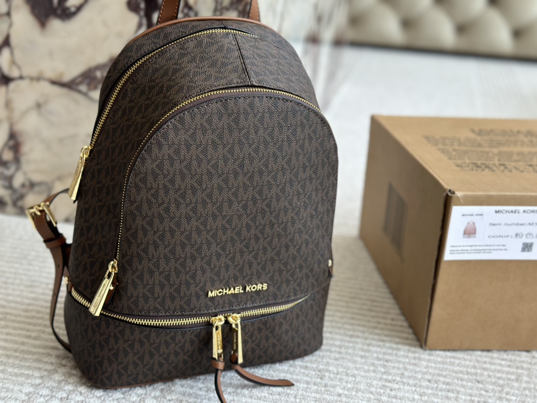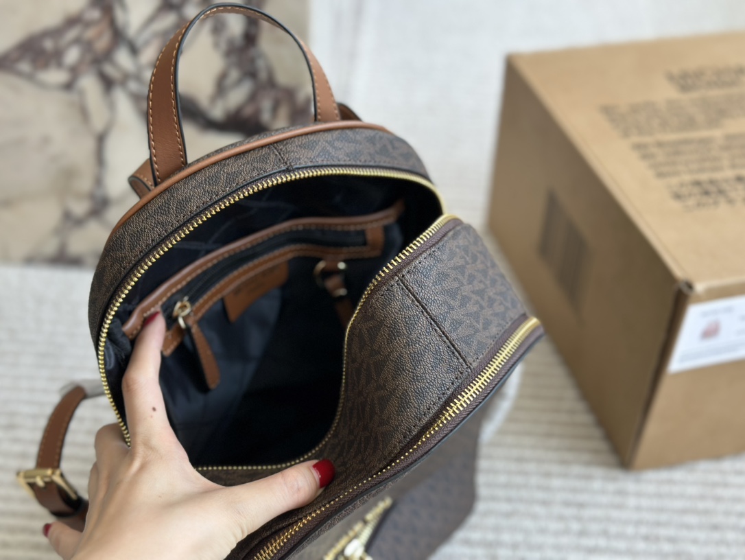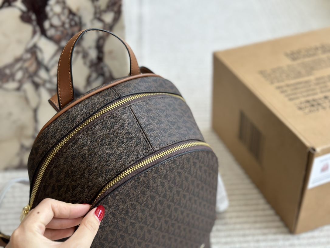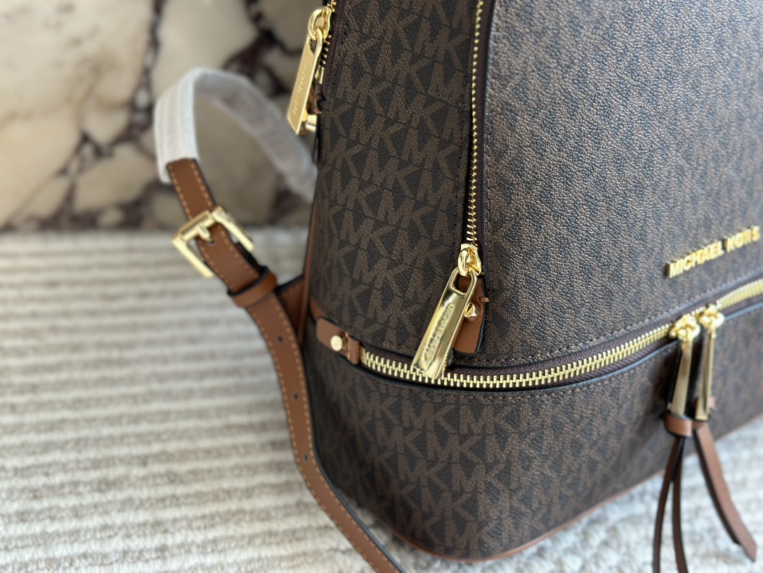 深棕色Michael Kors MK雙肩包,以簡約時尚的設計打造,完美結合實用性與品味。選用高品質皮革,細膩的質感與深棕色調相得益彰,無論是日常通勤還是休閒外出,都能輕鬆搭配。mk 雙肩包包身配有多個實用隔層,方便收納手機、錢包及其他小物,讓您的日常更有條理。michael kors 包包的金色MK標誌增添一絲奢華感,簡潔而不失典雅,輕鬆展現個人風格。這款百搭雙肩包是現代女性的理想選擇,既實用又具有高雅氣質。