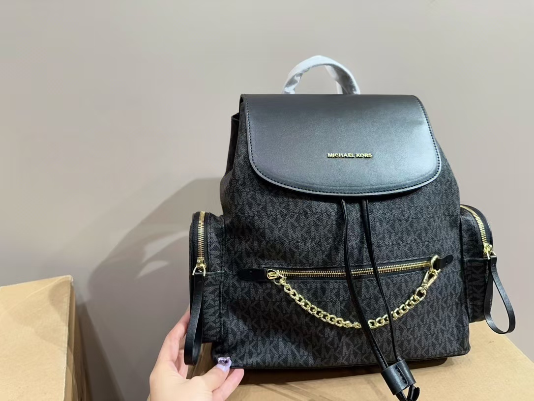 Michael Kors MK超大容量雙肩包,採用品牌經典拼色老花設計,結合高質感金色細節,展現奢華與時尚。MK雙肩包包身使用耐用且輕盈的材料,具有極高的實用性,提供寬敞的內部空間,輕鬆收納日常必需品。背帶可調節,佩戴舒適,適合各種場合。這款經典設計融合了摩登與實用,無論是工作、旅行或日常使用,都能提供完美的搭配選擇,是追求品質與品味人士的理想選擇。