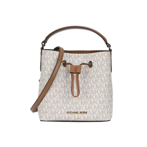此款 Michael Kors Suri是經典迷你水桶包系列,採用浮雕金屬LOGO與防刮皮革/內裡皮革,束口開口,可拆卸提手和可調節肩帶,方便實用。michael kors 側背包可放中短夾及手機等隨身小物,是款出遊無負擔包款,若偏好實用迷你包的你,不能錯過這款。
