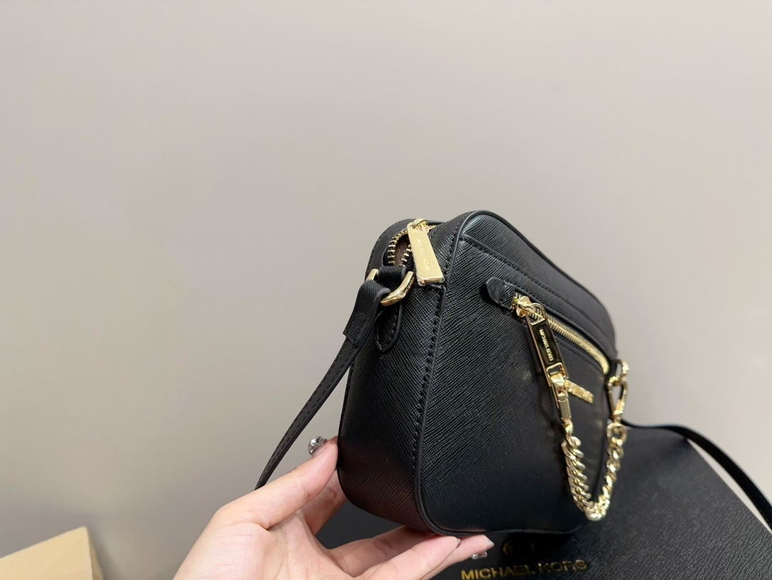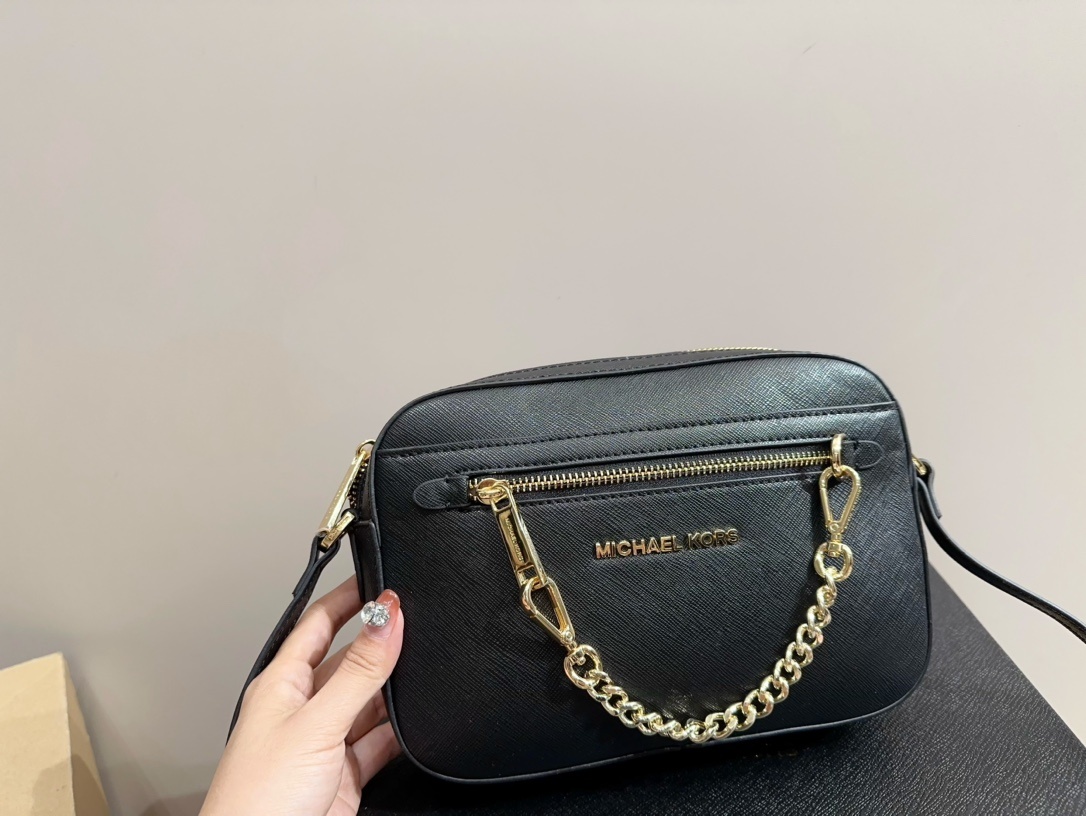Michael Kors MK Jet Set 系列簡單大方相機包,為現代女性設計,融合了時尚與實用性。這款Michael Kors 相機包以經典黑色為基底,搭配簡約的金屬LOGO,展現低調的奢華感。其外觀簡潔、大方,無論是搭配休閒或正式造型,都能完美融合。mk 包內部空間設計合理,可輕鬆收納手機、錢包、化妝品等小物,是日常出門、旅行或聚會的理想選擇。質感皮革材質保證了包包的耐用性,讓您長時間使用仍保持良好狀態。