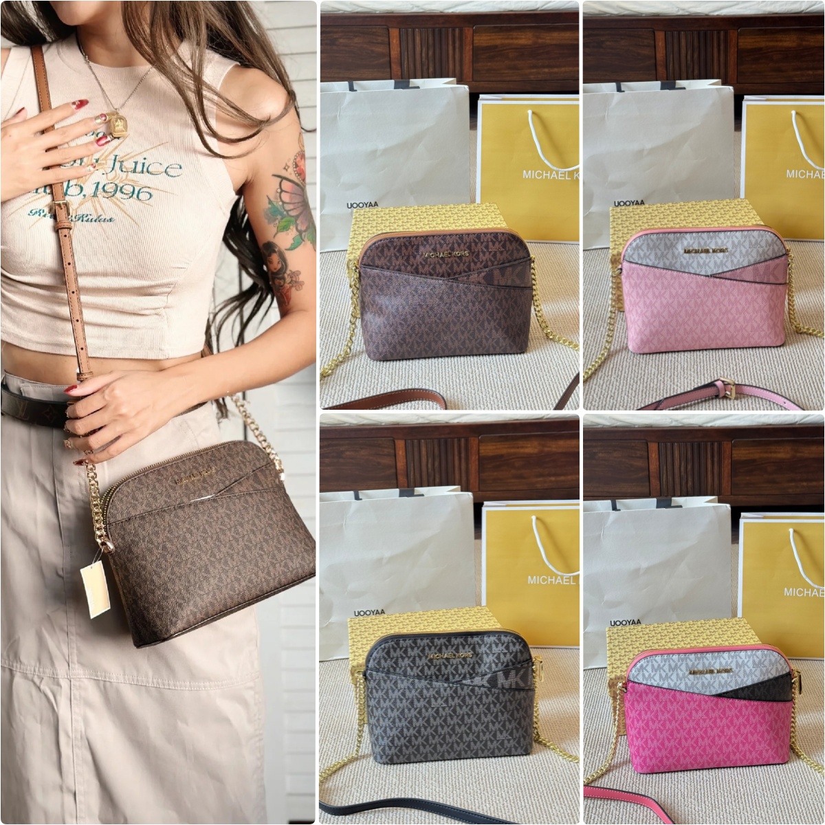 Michael Kors MK Jet Set 系列相機包,簡約大方,完美詮釋現代女性的時尚品味。這款相機包以黑色為主色調,設計精緻且耐看,適合各種場合搭配。它擁有寬敞的內部空間,能夠輕鬆收納手機、錢包和其他小物品,並設有多個拉鍊袋,方便整理物品。經典的MK標誌為包包增添了獨特魅力,而高品質的皮革材質則提供了極佳的耐用性與舒適手感。無論是日常出行還是休閒聚會,這款相機包都是您理想的選擇,讓您隨時展現精緻品味。