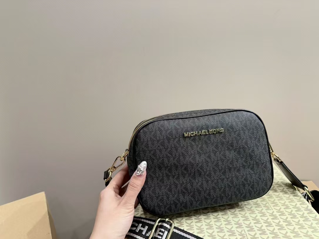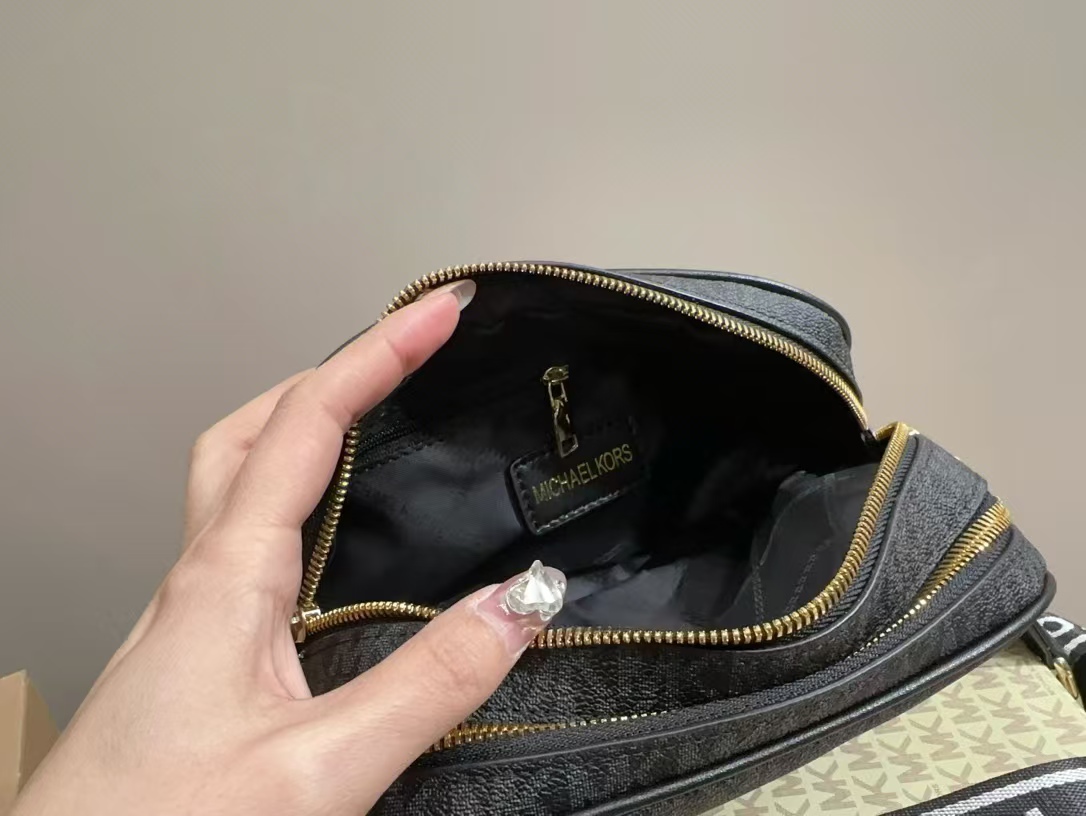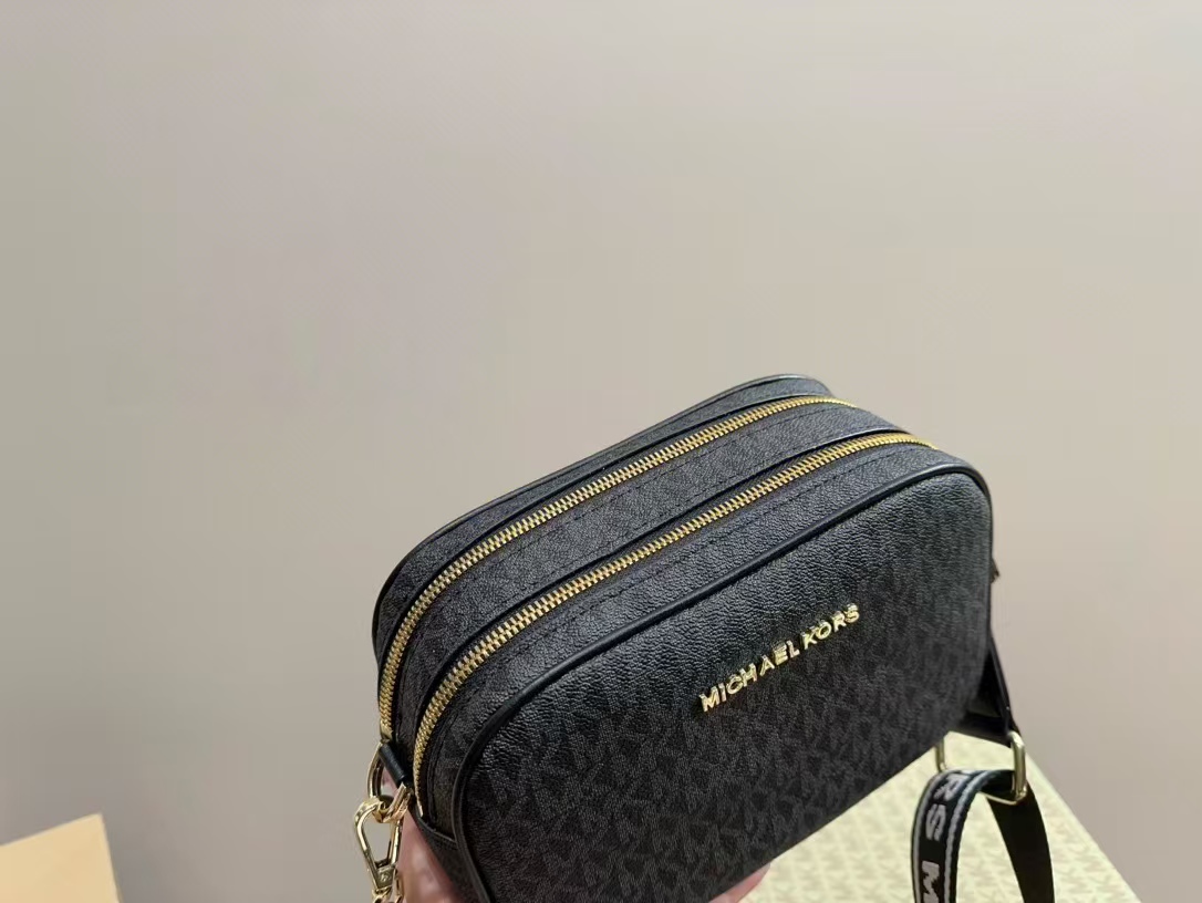 Michael Kors MK雙層相機包,完美融合低調奢華與實用設計。此款相機包採用高品質皮革製成,經典黑色調顯得既優雅又耐看。雙層設計讓您可以輕鬆收納手機、錢包、化妝品等隨身物品,內部分隔合理,提供極佳的整理空間。可調節肩帶設計,無論斜挎或肩背都非常舒適。這款相機包是日常出行的理想選擇,兼具時尚感與實用性,展現出MK的獨特魅力。