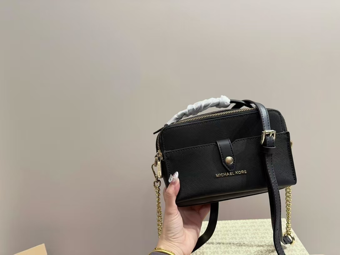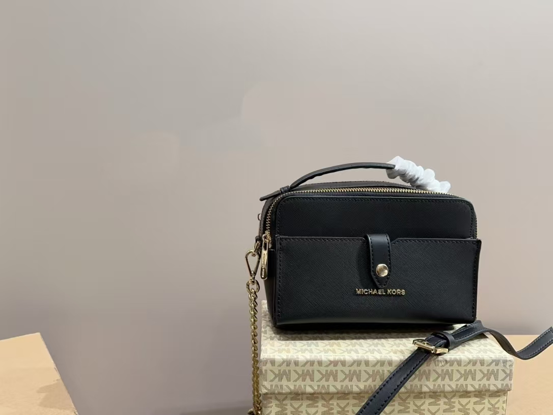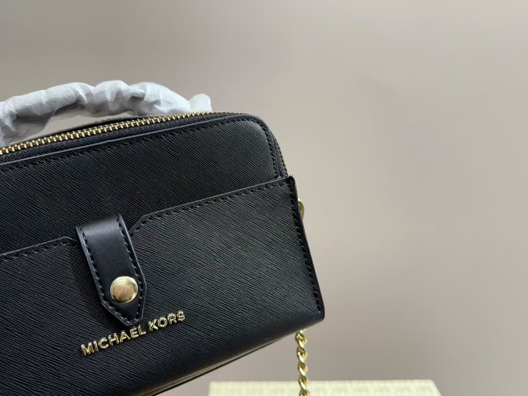 Michael Kors MK高級時髦相機包,採用精緻的黑色皮革材質,外觀典雅而現代,展現出品牌一貫的高端品味。mk 包包設計靈感來自相機包的經典款式,簡約而實用,內部空間充足,適合收納手機、錢包、化妝品等日常必需品。精細的金屬配件與品牌標誌,增添了獨特的時尚感,無論是日常通勤還是外出聚會,都能輕鬆搭配,彰顯個人品味與格調。這款Michael Kors 相機包兼具實用與時尚,無論何時何地都能成為您造型的亮點。