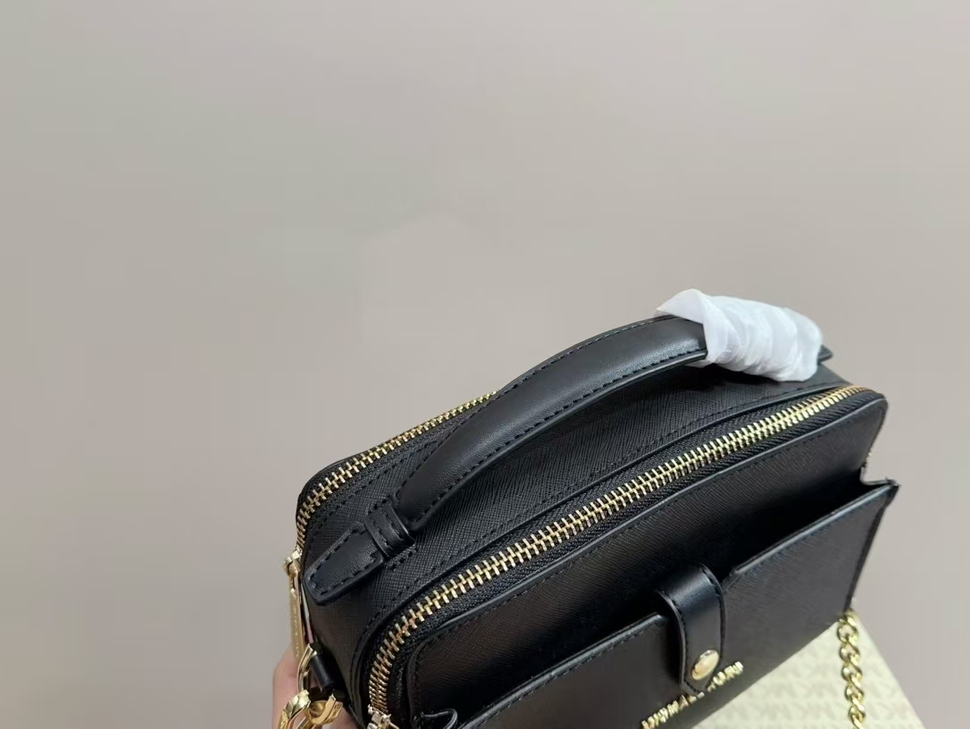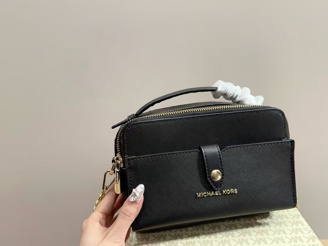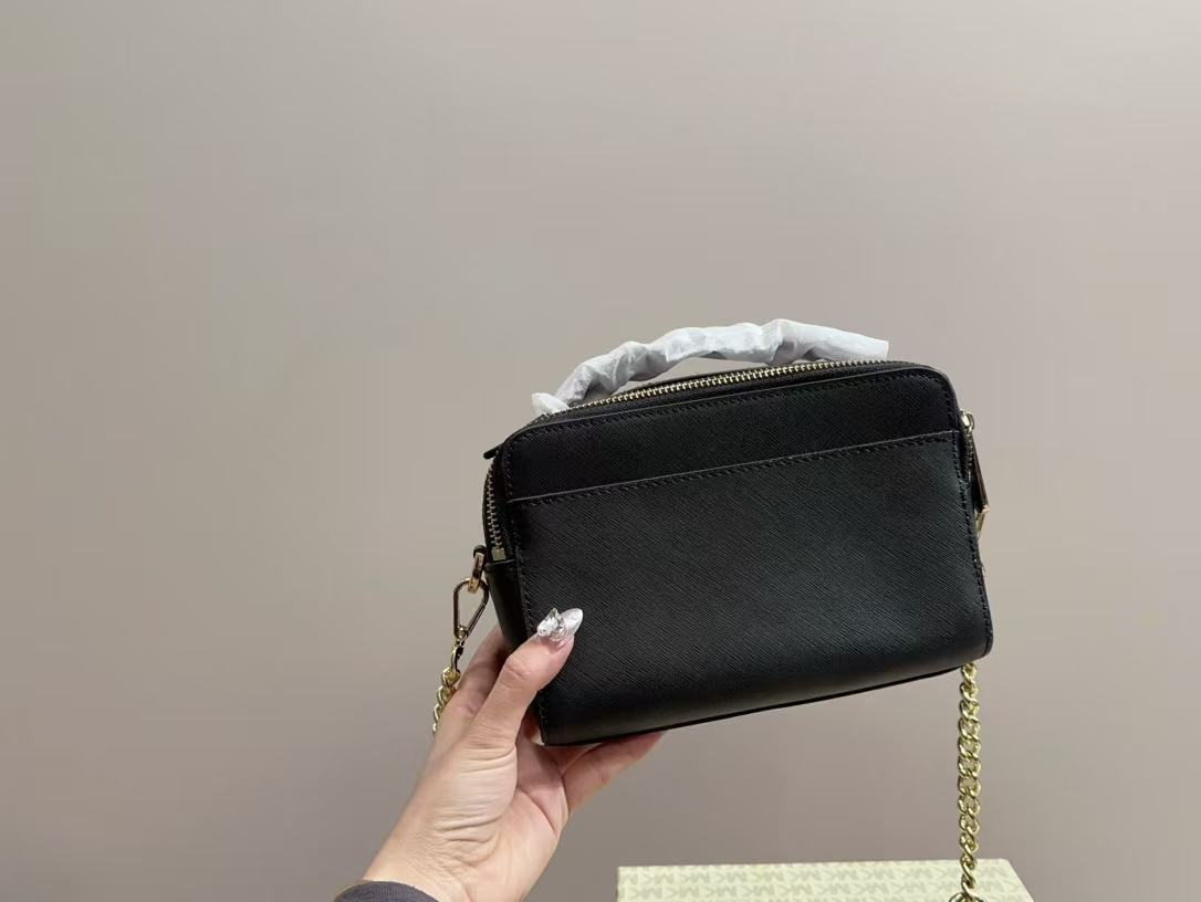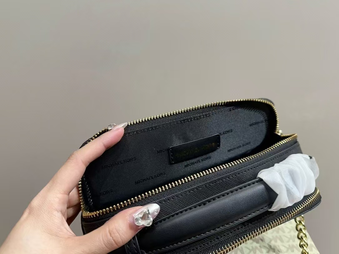 Michael Kors MK高級時髦相機包,採用精緻的黑色皮革材質,外觀典雅而現代,展現出品牌一貫的高端品味。mk 包包設計靈感來自相機包的經典款式,簡約而實用,內部空間充足,適合收納手機、錢包、化妝品等日常必需品。精細的金屬配件與品牌標誌,增添了獨特的時尚感,無論是日常通勤還是外出聚會,都能輕鬆搭配,彰顯個人品味與格調。這款Michael Kors 相機包兼具實用與時尚,無論何時何地都能成為您造型的亮點。