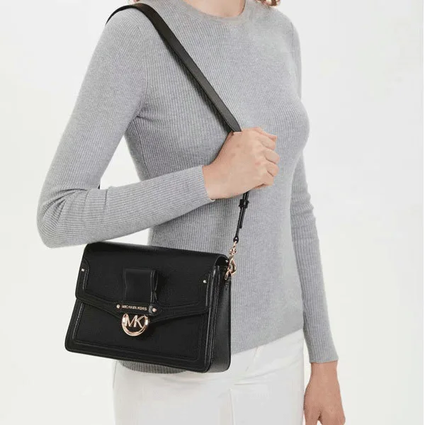 Michael Kors Jessie 中號荔枝紋皮革翻蓋單肩包兼斜挎包,採用經典的黑色與棕色搭配,展現時尚與實用並重的設計。此款MK 包包選用荔枝紋皮革材質,手感柔軟且耐用,並以翻蓋設計方便開關,內部空間充足,適合日常攜帶物品。mk 單肩包可調節的肩帶提供單肩背或斜挎使用的靈活性,無論是日常出街還是正式場合,皆能展現優雅氣質,是現代女性的理想選擇。