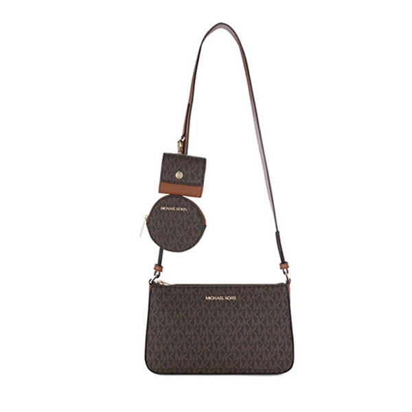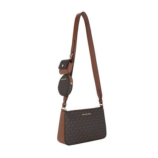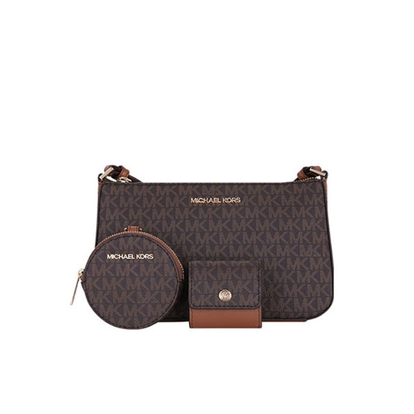 Michael Kors MK Jet Set Travel 三合一單肩斜挎包,設計精緻且實用,完美融合現代與經典風格。此款女款包包採用棕色與白色老花圖案,展示品牌獨特的時尚魅力。MK 包包設計為三合一多功能款式,除了作為單肩包和斜挎包外,還能拆卸成兩個小包,方便不同場合的使用。mk 單肩包內部空間寬敞,可輕鬆收納日常所需物品,並配有拉鍊和磁扣設計,保證物品安全。無論是日常出街或旅行,它都能成為您完美的搭配選擇,展現優雅與高端品味。