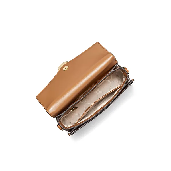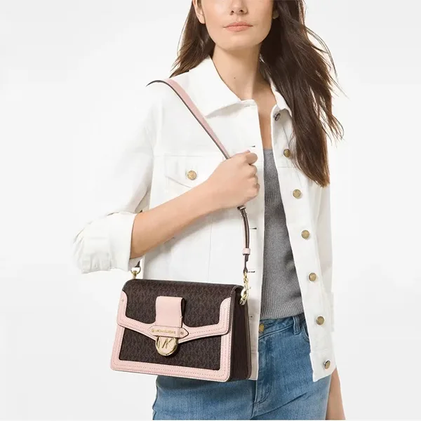 該包採用細膩皮革製作,表面飾有標誌性的雙色品牌Logo印花,磁吸搭扣搭配品牌Logo金屬吊墜,mk 斜背包造型搶眼且別具壹格。包蓋翻開後,內部空間寬敞,足夠日常使用。此外,其可拆卸肩帶設計,讓使用者可以根據需要隨時調整為單肩背或斜挎,寬肩帶設計也大大減輕了背負時的壓力。