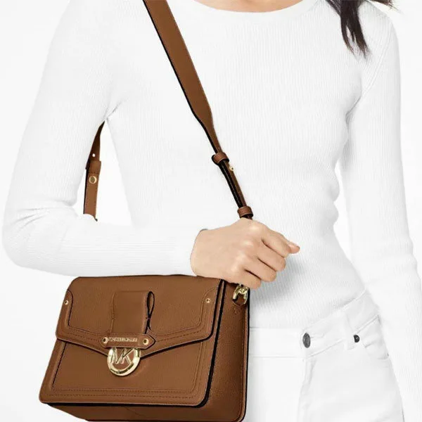 Michael Kors Jessie中號單肩包/斜挎包,選用了高質感的荔枝紋皮革作為主要材質,呈現出細膩且富有層次的紋理效果。包身以經典的黑色或棕色呈現,色彩沉穩大氣,易於搭配各種服飾風格。