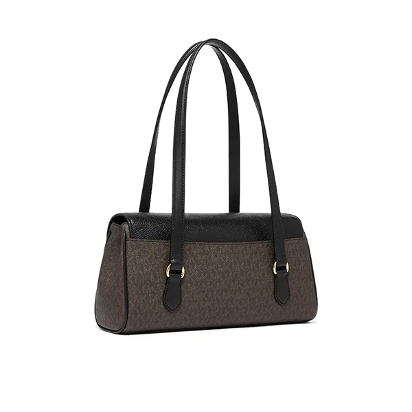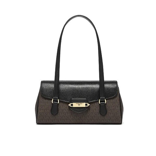 此款 Fleur 中號老花拼色單肩包,包身選用品牌標誌性 Logo 印花,包蓋選用經典黑色材質打造時下流行的托特包造型,硬挺時髦。mk 單肩包單品設有純色長手提柄,復古大氣,集潮流與實用為一體。翻蓋開合,拉鏈隔層設計,上綴低調金屬件裝飾,細節處彰顯品牌質感。這款mk 手提包內部空間充裕,可以輕鬆收納您的日常用品,增添單品實用性。