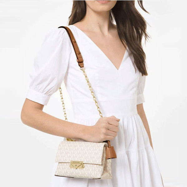 Michael Kors MK Cece 小號老花單肩包,將經典的MK老花圖案與時尚設計巧妙結合,展現優雅與現代感。此款michael kors 包包採用高品質皮革製作,質地柔軟且耐用,搭配精緻的金屬細節,增添一絲奢華感。mk 側背包小號尺寸提供適中的儲物空間,輕鬆收納手機、錢包等必需品,並配有可調節肩帶,既能單肩佩戴,也可斜挎,適應不同場合需求。無論是日常外出、上班還是約會,這款mk 側肩包都能輕鬆搭配各種服飾,為您的造型增添一份優雅與時尚感。無論在任何場合,都是女性不可或缺的時尚單品。