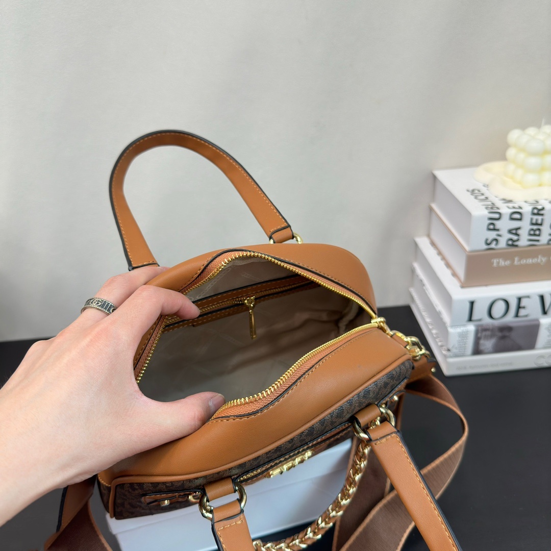 【經典老花色】Michael Kors MK 时髦氣質 新款保齡球包 手提包 斜挎包