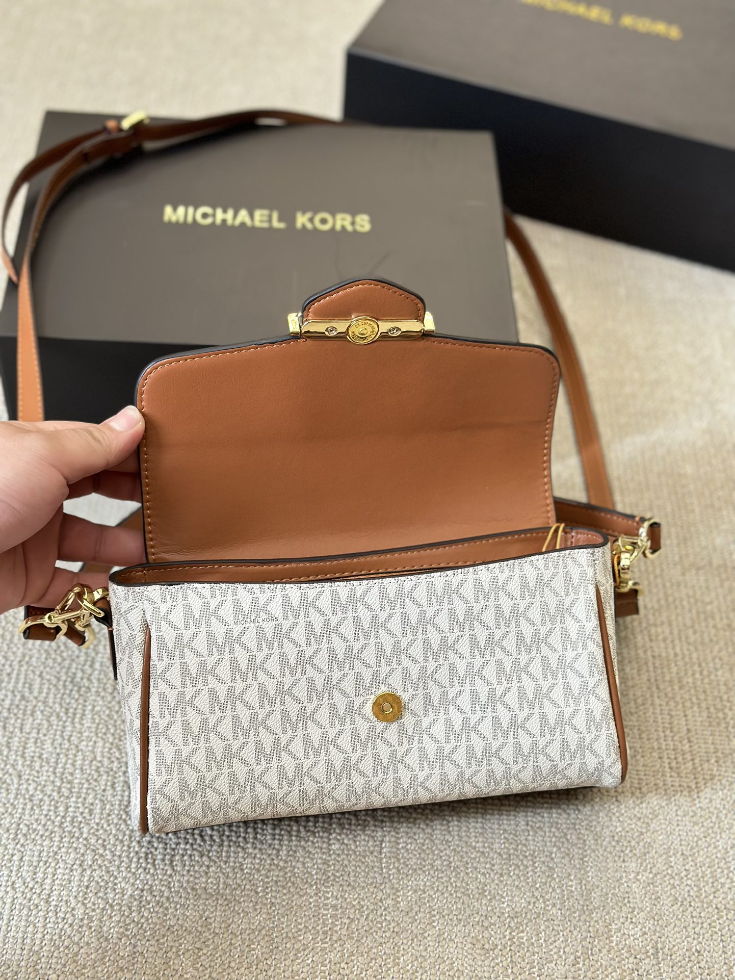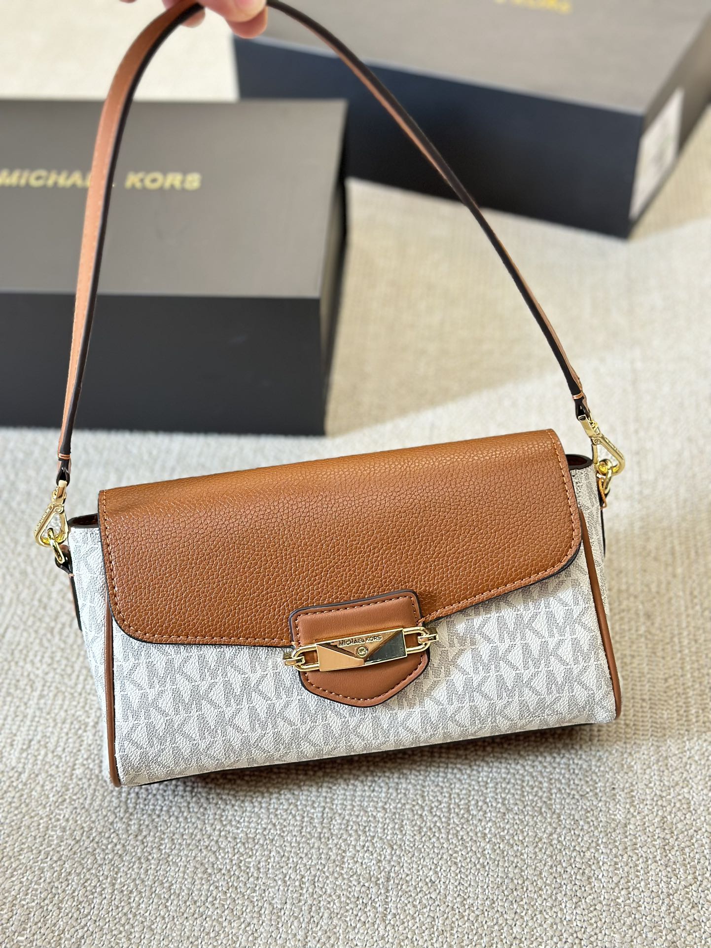 mk 包包系列中的清新之选——香草白MK Parker新款法棍包,以其淡雅的色彩和精致的设计,让人眼前一亮。这款MK小包以香草白为主色调,展现出清新脱俗的气质,非常适合春夏季节的搭配。Parker法棍包的设计灵感源自法式优雅,简约而不失时尚感。无论是休闲出行还是正式场合,MK包包都能成为你穿搭的亮点。mk 小包不仅外观迷人,实用性也极强,是你日常出街的完美伴侣。