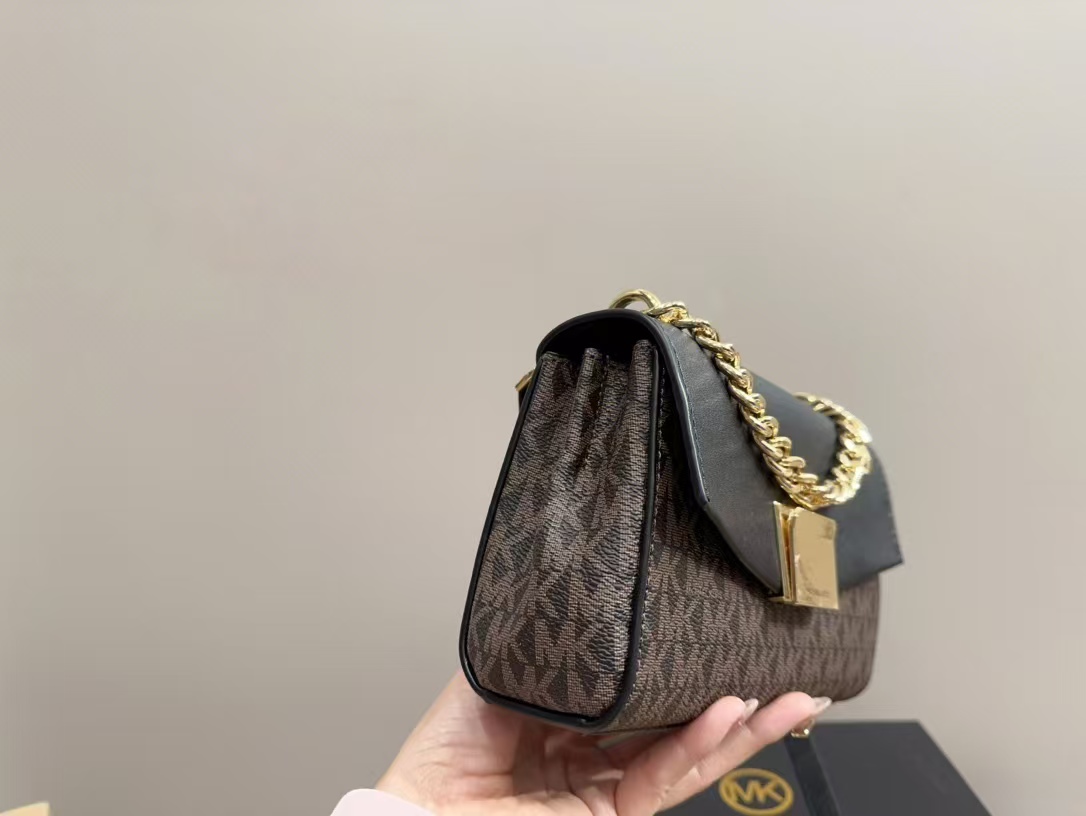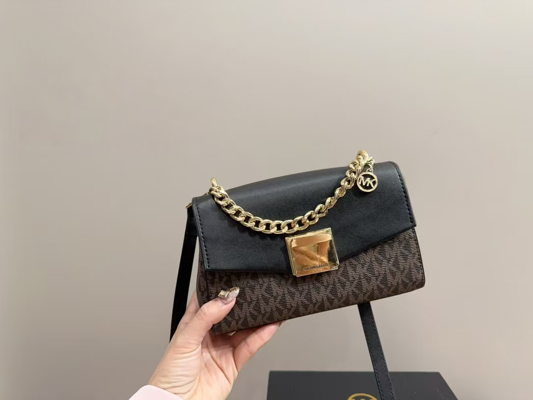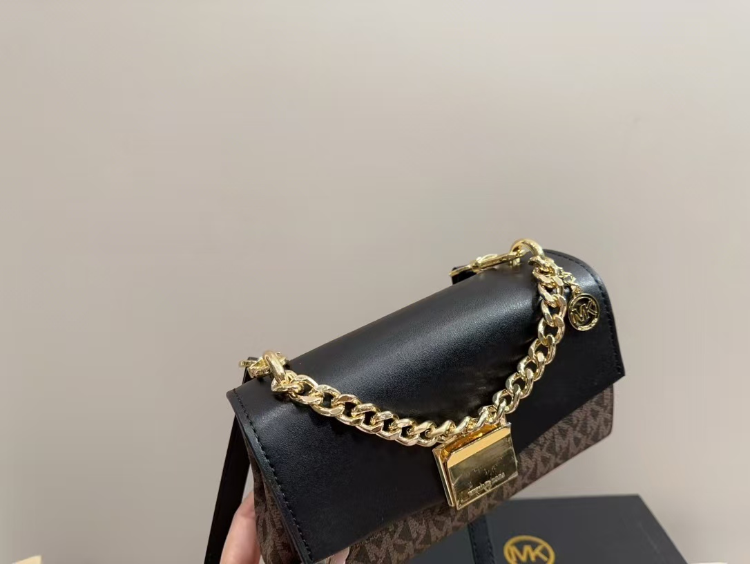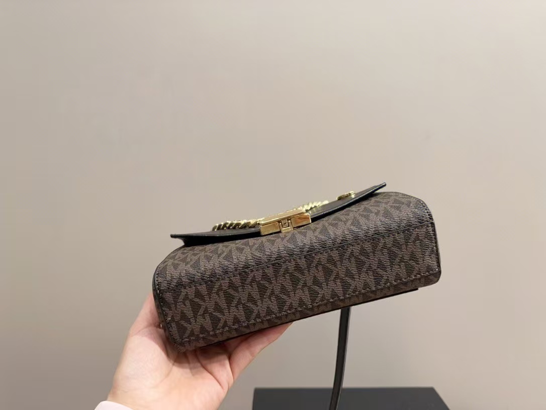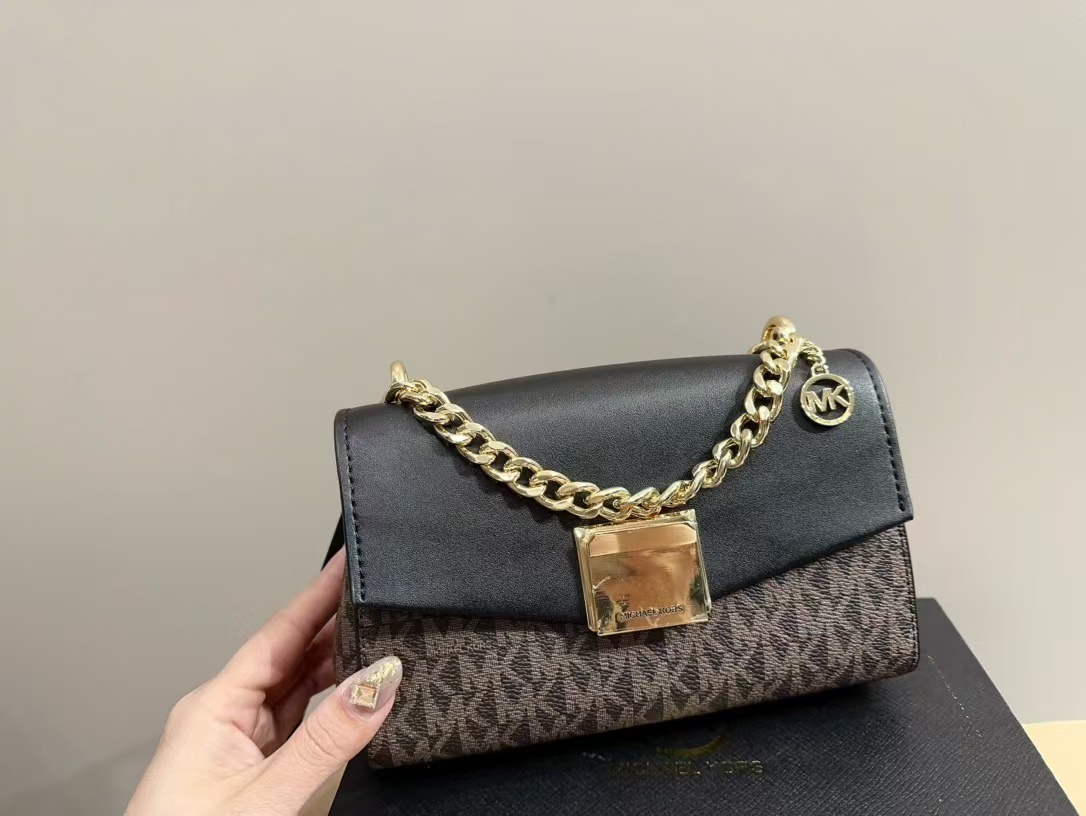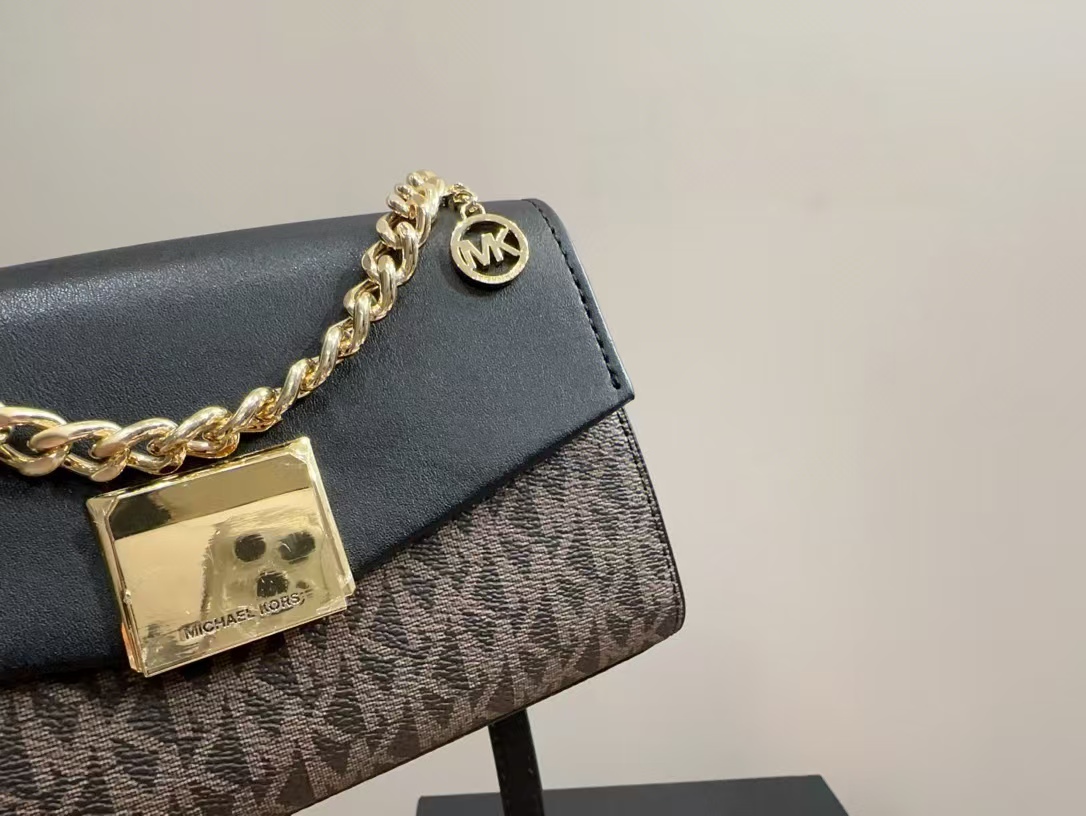 這款michael kors 包包採用經典的黑色老花圖案,搭配精緻的金屬鏈條,展現出奢華與品味。包身採用高品質皮革,手感柔軟且耐用,內部空間適中,適合攜帶手機、錢包等日常必需品。無論是日常通勤、聚會還是晚宴,這款mk 鏈條包都能完美搭配各種服裝,展現佩戴者的品味與自信。