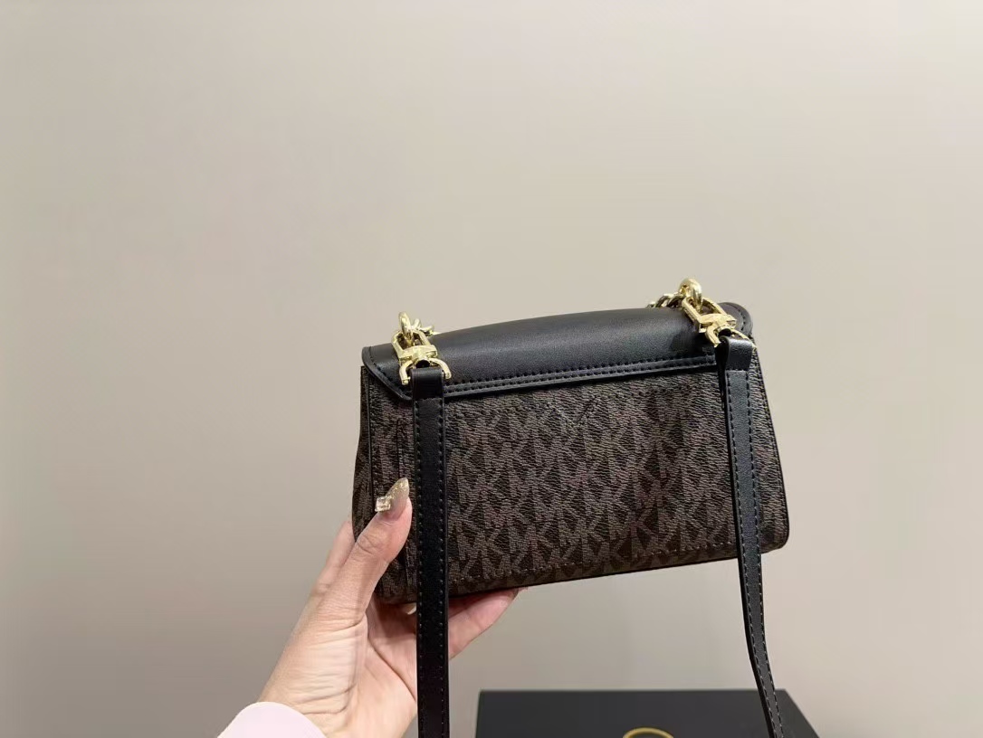 Michael Kors MK Lita 鏈條包以黑色老花圖案為設計特色,展現經典與現代時尚的完美結合。michael kors 側背包小巧精緻的包型,適合日常使用或特殊場合搭配,無論是通勤還是晚宴都能增添優雅氣質。包身採用高品質皮革,手感柔軟且耐用,搭配精緻的金屬鏈條,突顯奢華感。mk 鏈條包內部空間設計巧妙,能夠容納手機、卡片和少量隨身物品,讓您輕鬆出門卻不失時尚感。這款mk 包包不僅具有實用性,更能彰顯佩戴者的品味,是每位女性衣櫃中必備的時尚單品。