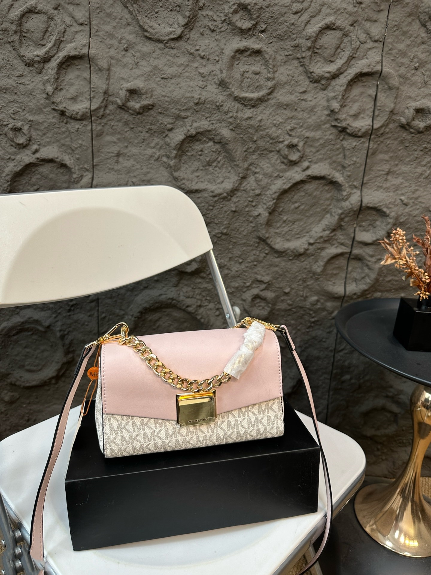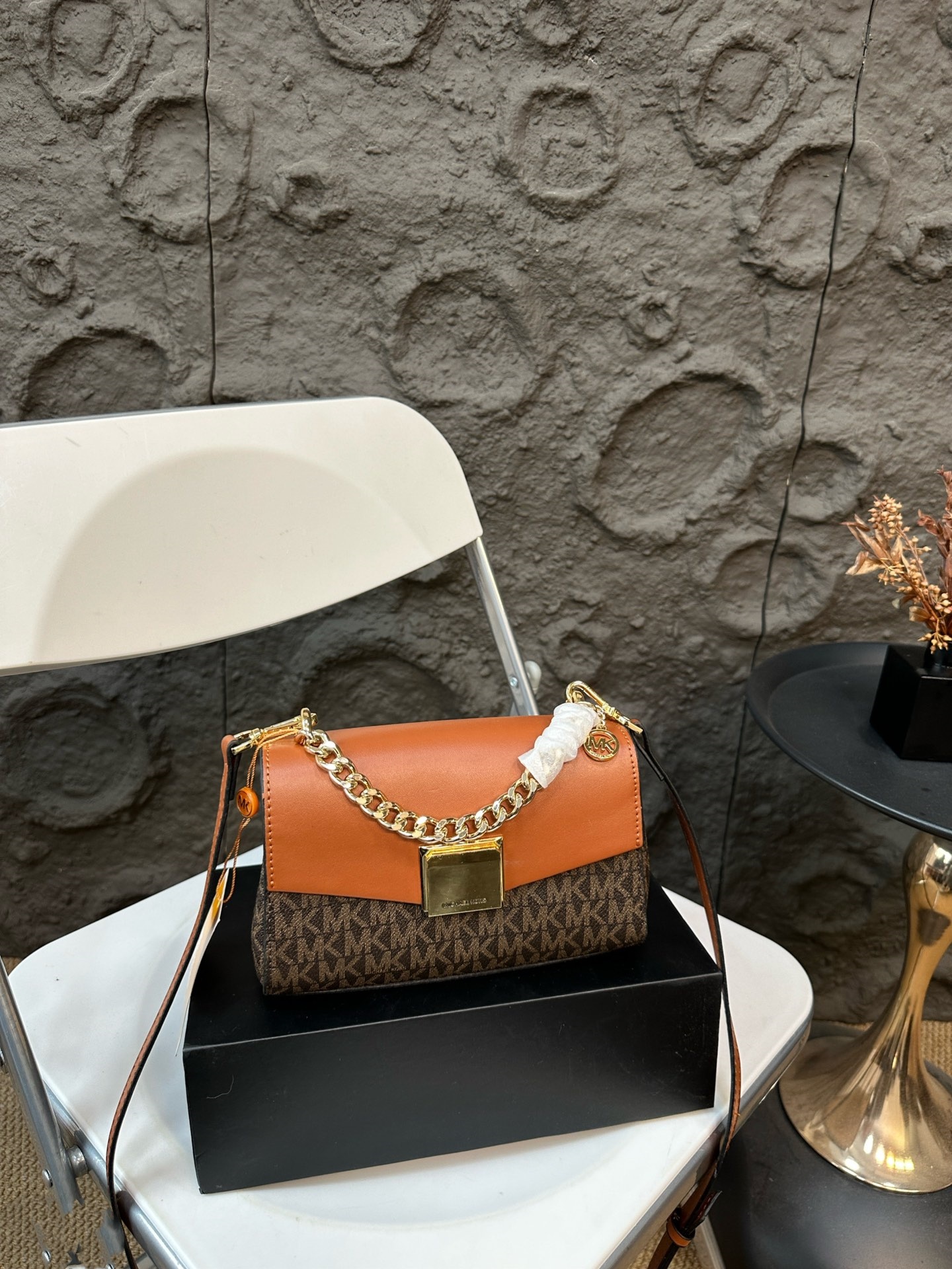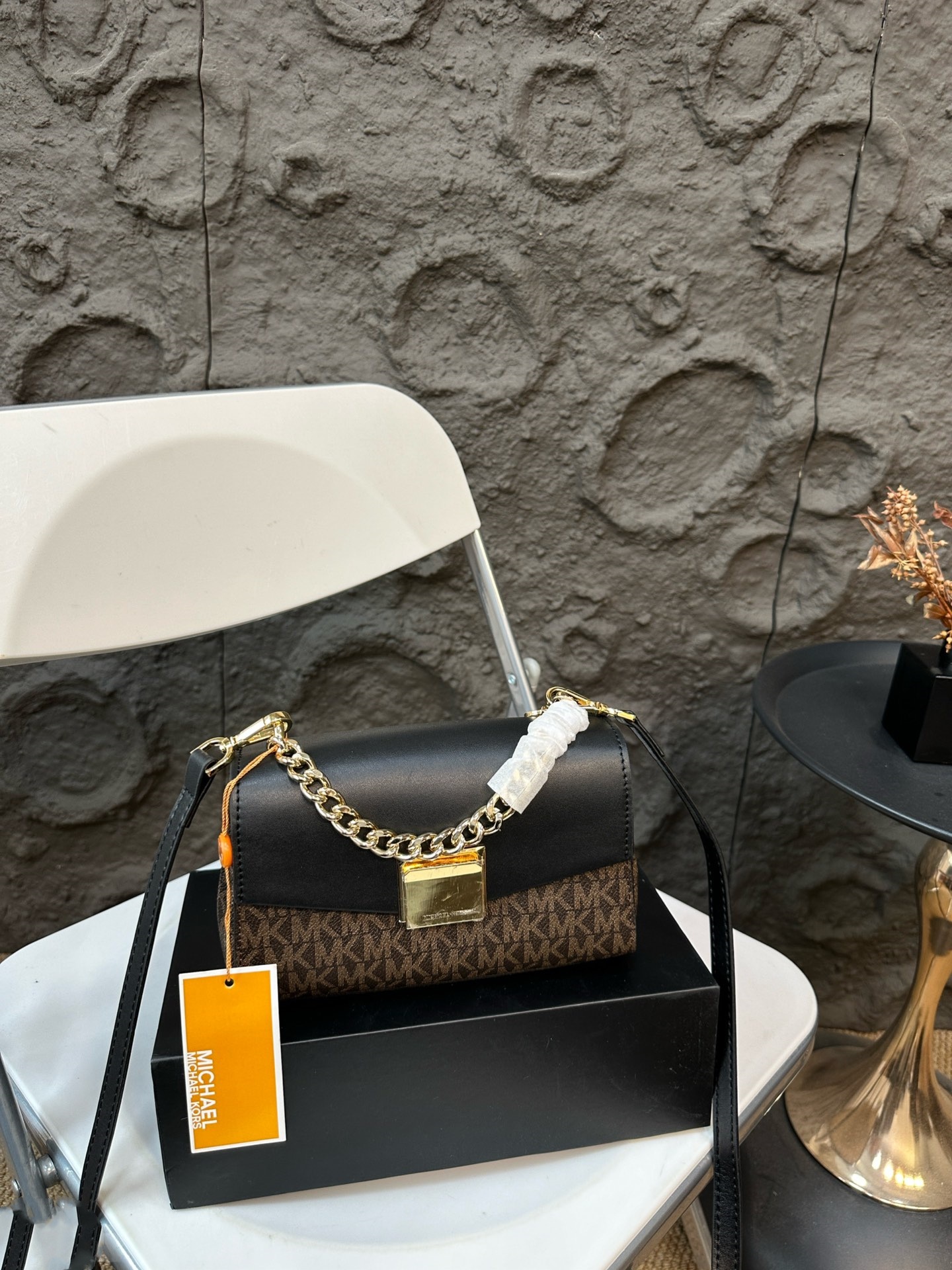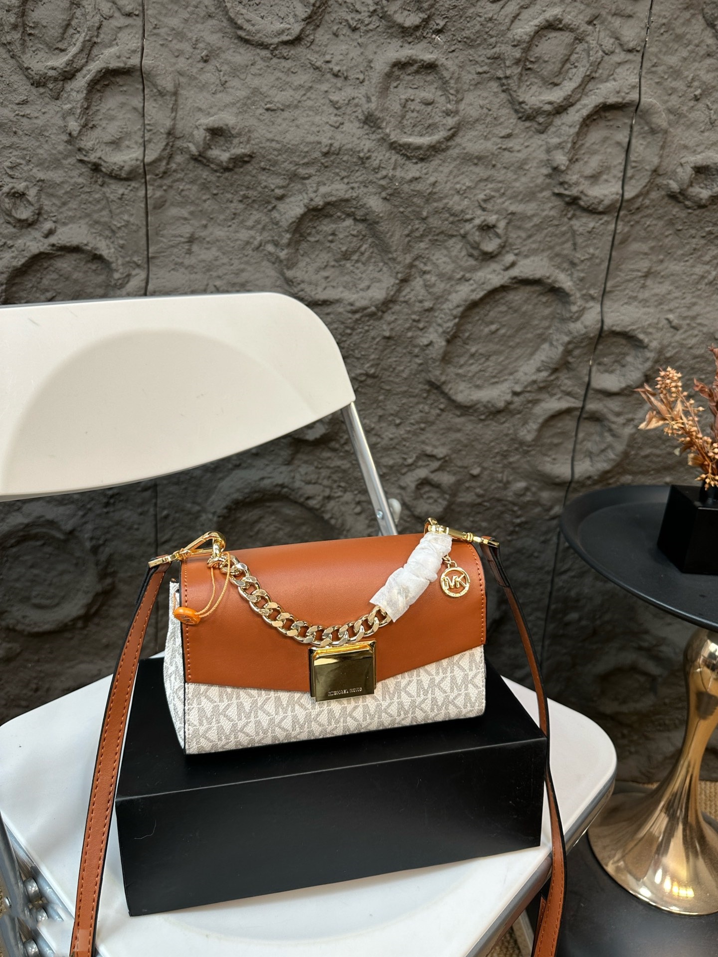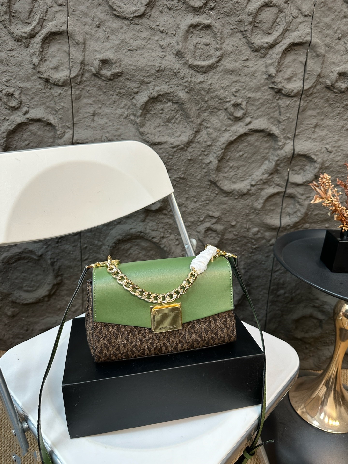 Michael Kors MK Lita 系列鏈條包以其經典大氣的設計,成為時尚愛好者的首選。這款mk 鏈條包提供五種精選顏色選擇,滿足不同穿搭需求,無論是優雅的棕色、經典的黑色,還是清新的綠色、柔和的粉色與焦糖色,每種顏色都能完美搭配各種場合。包身採用高品質皮革,觸感柔軟且耐用,搭配精緻的金屬鏈條,增添奢華感。michael kors 包包內部空間寬敞,設有多個隔層,方便整理手機、錢包等物品,讓您在日常生活中既實用又時尚。無論是上班、聚會還是旅行,這款包包都能展現佩戴者的品味與自信。