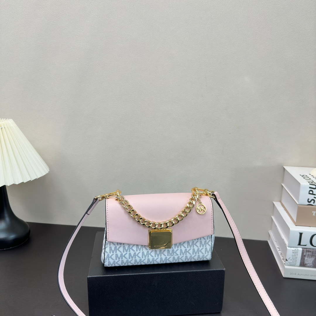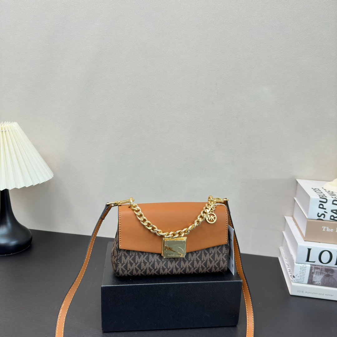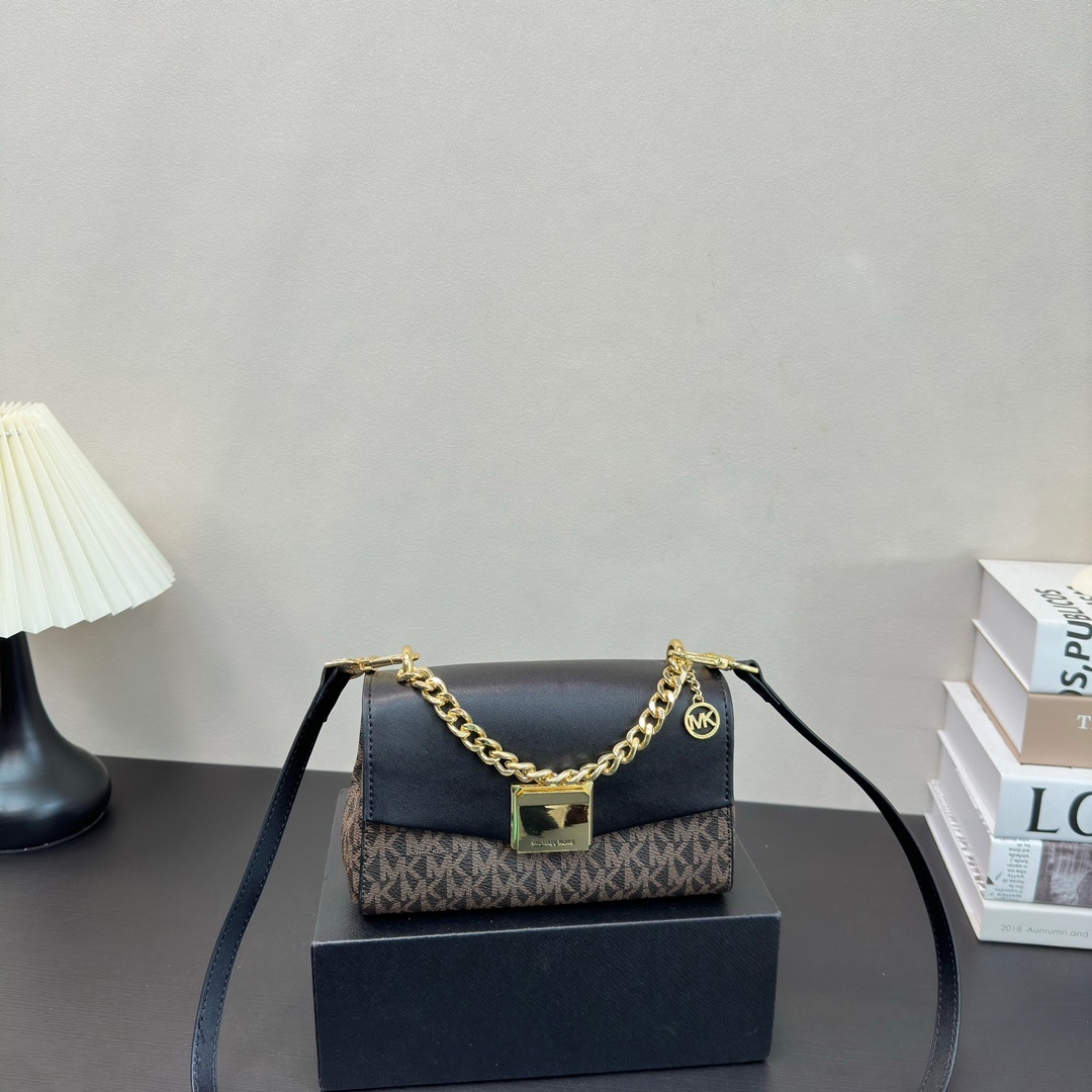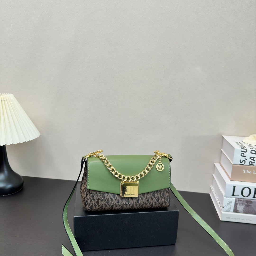Lita 系列链条包,非常经典大气,小巧精致,可手提可斜挎!此款mk 包包採用高品質皮革製作,手感柔軟且耐用,搭配精緻的金屬鏈條肩帶,增添一絲奢華氣息。mk 單肩包內空間寬敞,適合日常使用,可輕鬆容納手機、錢包、化妝品等小物品。