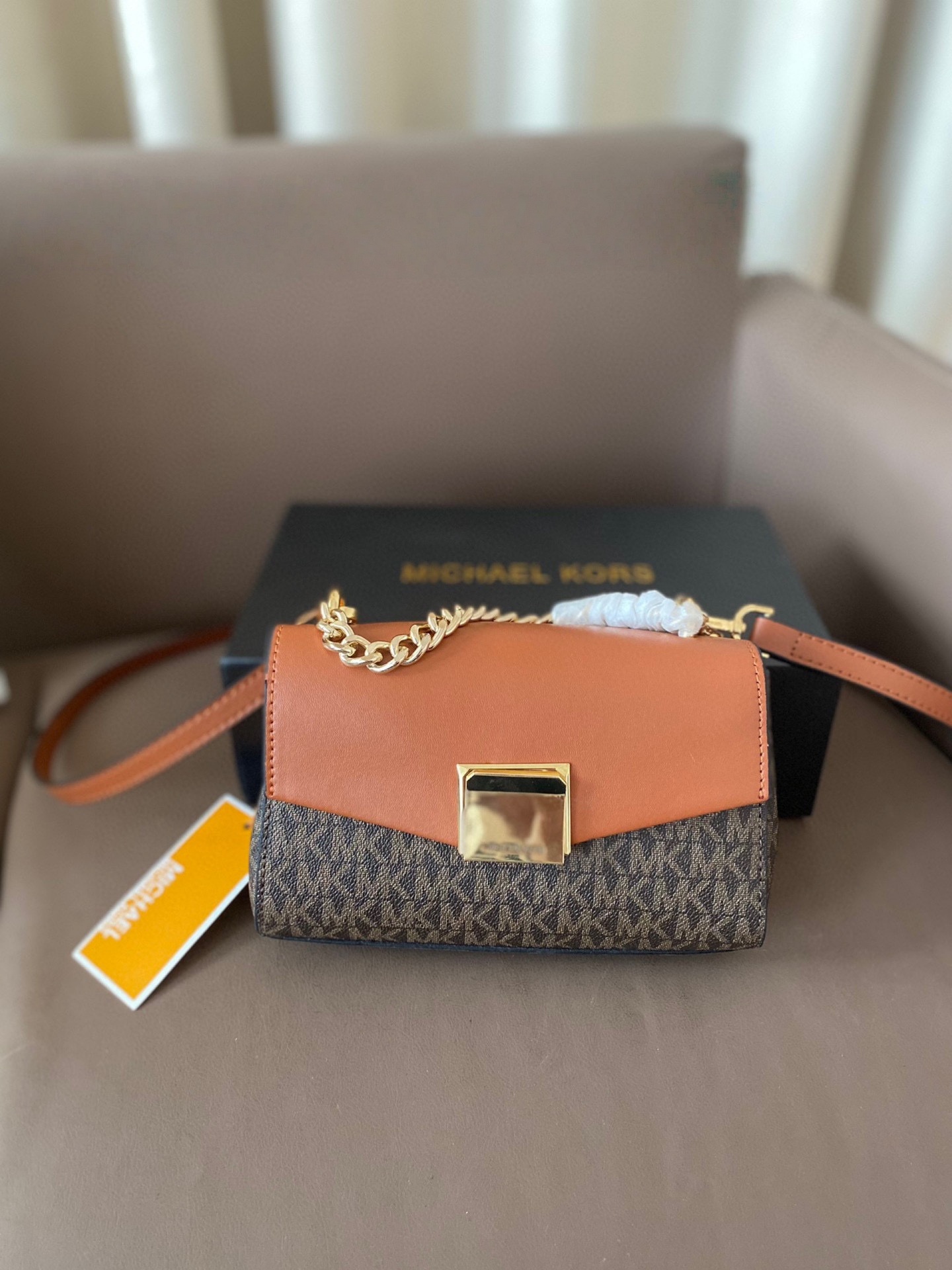 Michael Kors MK Lita 系列棕色老花鏈條包,融合經典設計與現代實用性,成為時尚與功能兼具的完美選擇。包身採用高品質皮革,觸感柔軟且耐用,搭配精緻的金屬鏈條,增添一抹奢華感。MK 斜背包棕色老花圖案展現品牌獨特魅力,無論是日常通勤還是休閒聚會,都能輕鬆搭配各種服裝。mk 包包中型尺寸的設計提供充足的儲物空間,內部設有多個隔層,便於整理手機、錢包等物品。這款包包不僅實用,還能展現佩戴者的品味與自信,是各種場合的理想選擇。