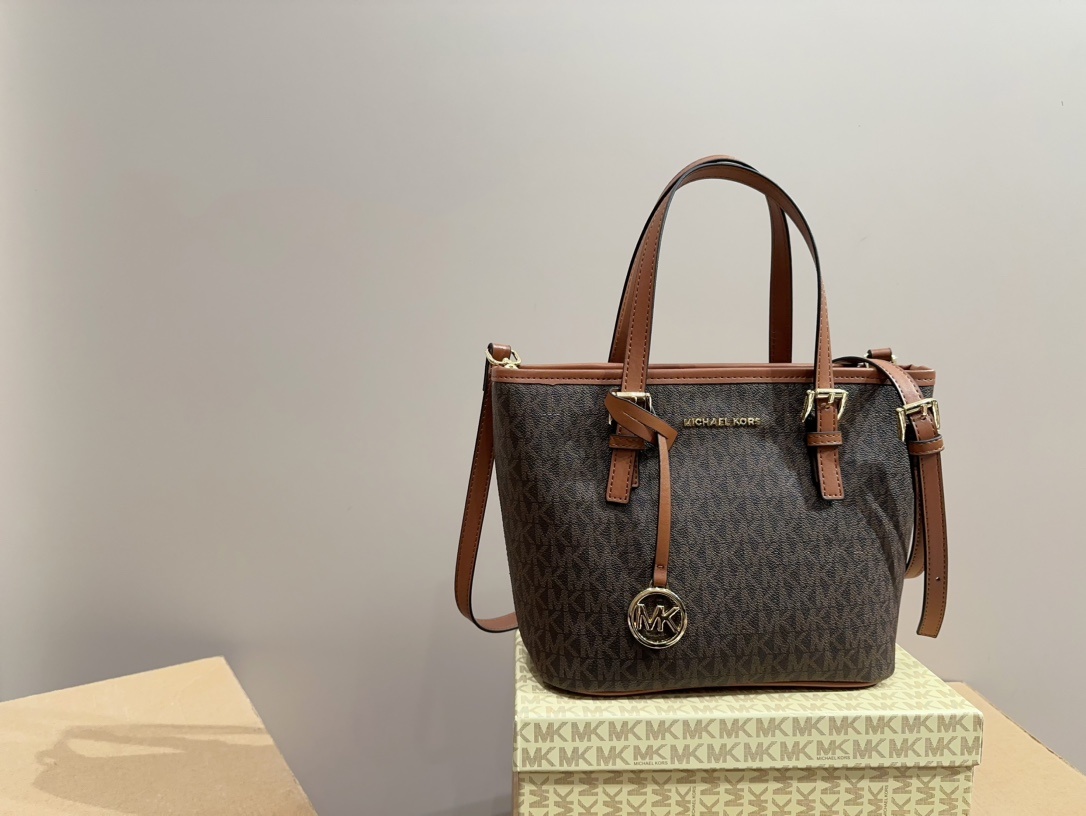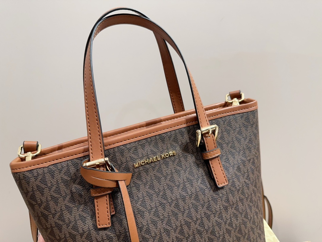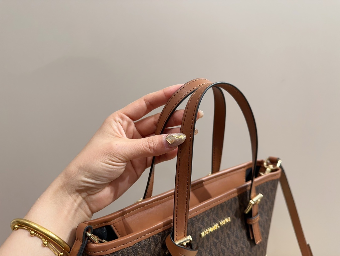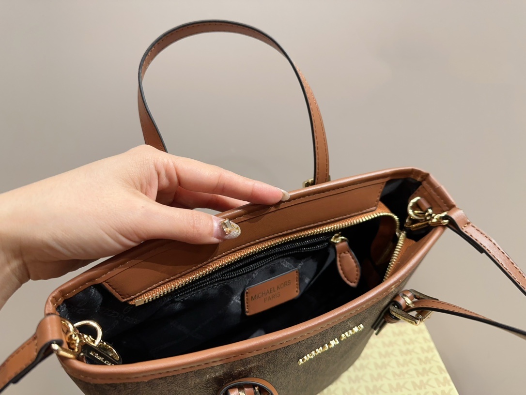 這款手提包以棕色為主色調,融合現代簡潔的設計理念,呈現出時尚優雅的外觀。它的菜籃子設計以簡單的圓形輪廓與直線勾勒出柔美而不失穩重的風格,既展現出輕鬆休閒的感覺,又不乏精緻感,完美演繹出michael kors 手提包時尚與實用並重的設計哲學。mk 包包的獨特菜籃子造型不僅能提升整體造型的精緻感,也在實用性上提供了很大便利。無論日常出門還是上班通勤,這款包包都能輕鬆滿足您的需求。
