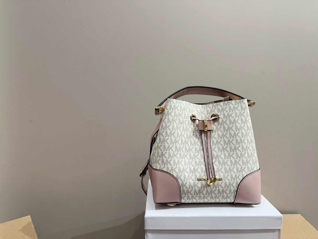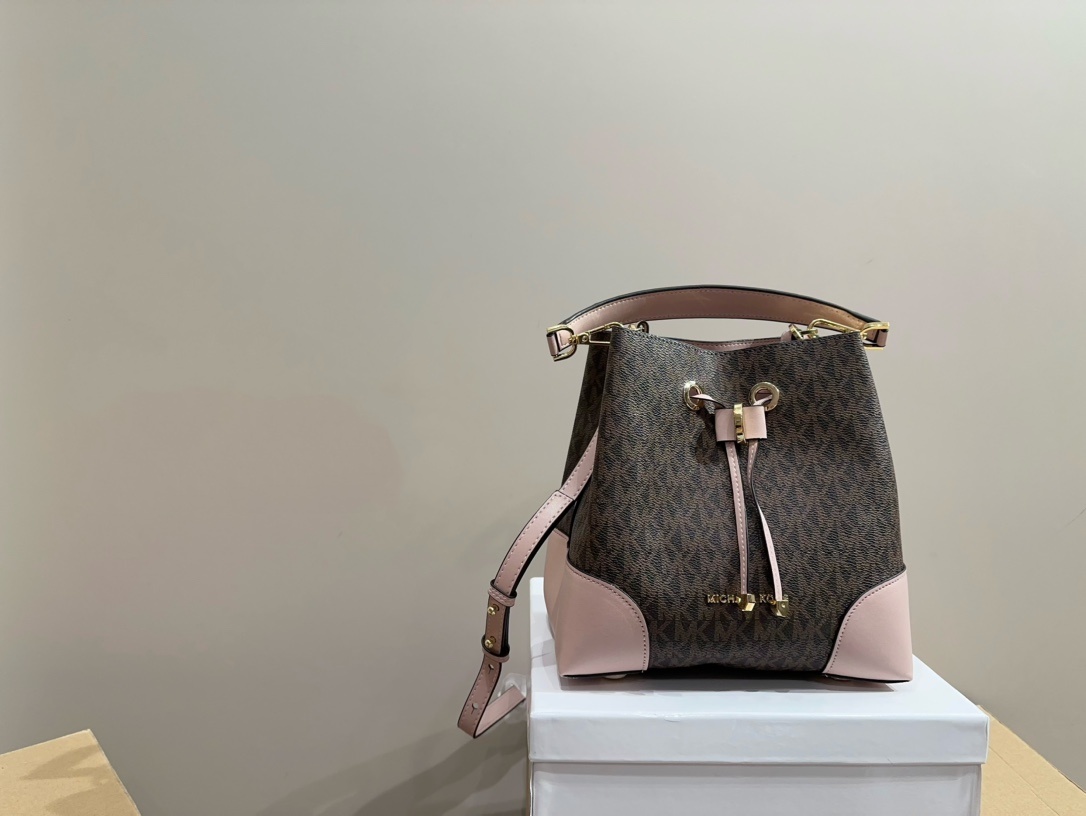 嫩粉色包带少女感十足,水桶包型超级时尚,很特别包身不大但是内里简直太能装了,很深日常出门完全够用。michael kors 手提包经典老花抽绳,粉粉嫩嫩的随便套件连衣裙西装都好看,上身瞬间觉得自己年轻了十多岁呐,包型方正立体不易变形。mk 單肩包經典水桶包形狀,寬敞的內部設計,適合攜帶各種物品,並保持包包的整潔有序。