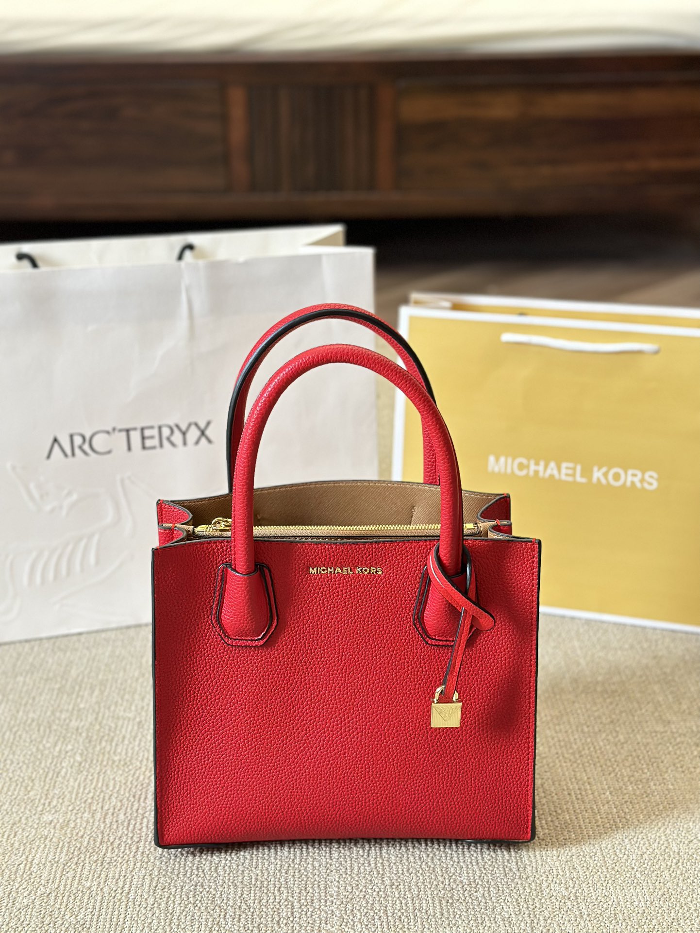 Michael Kors MK 經典Mercer風琴包牛皮版本,精緻的設計完美結合實用性與時尚感,為每位女性的衣櫥增添一抹亮眼色彩。mk 手提包的包身採用高品質牛皮,手感柔軟且耐用,提供七種經典色選擇,適合搭配不同穿搭風格。
