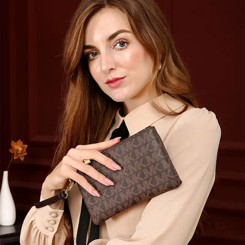 michael kors 手拿包最吸引人的地方,莫過於它的經典設計。沒有浮誇的裝飾,線條幹凈利落,搭配品牌標誌性的鎖扣或金屬LOGO,低調中透露著高級感。尺寸適中,既能裝下手機、口紅、鑰匙等小物件,又不會顯得笨重。尤其是純色款,比如黑色、奶茶色或米白色,幾乎能適配所有風格的服裝——無論是西裝、連衣裙還是休閑衛衣,隨手一拎就能提升整體質感。