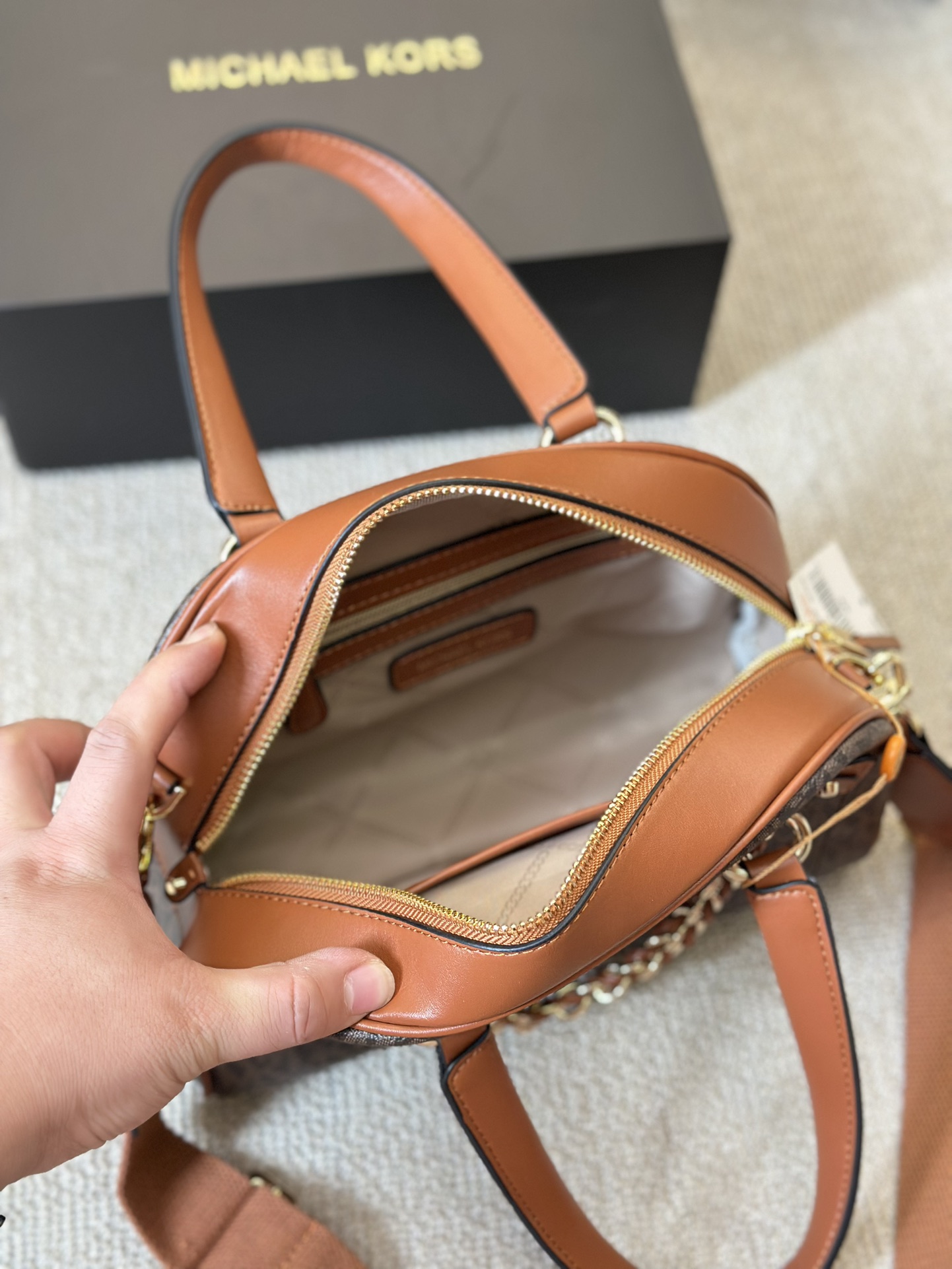 Michael Kors MK 日常通勤貝殼包,是mk 女包系列中的一款经典之作。这款mk 小包以复古的老花色为设计亮点,散发着独特的优雅气质。贝壳包的造型小巧精致,线条流畅,无论是搭配休闲服饰还是正装,都能轻松驾驭。MK小包不仅外观时尚,更兼具实用性,是日常通勤的理想伴侣。选择MK老花色贝壳包,让每一次出行都成为街头的一道亮丽风景线。