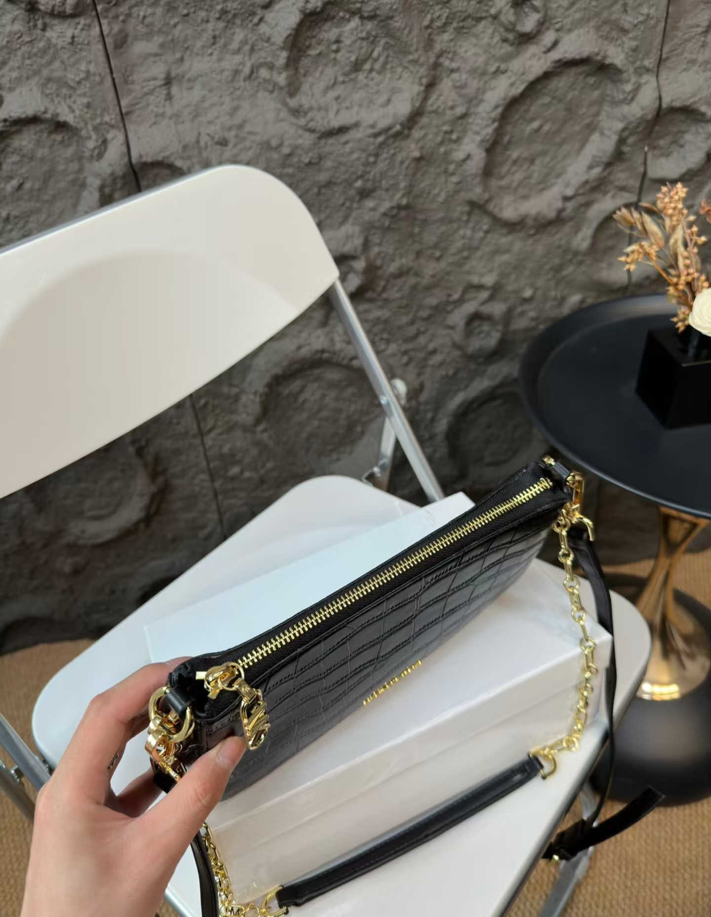 Michael Kors MK 輕便百搭新款相機包,設計簡約卻充滿時尚感,是每位潮流愛好者必備的單品。這款相機包採用高品質的皮革材質,手感細緻,耐用性強。黑色的經典色調使其易於搭配各式服裝,無論是休閒穿搭還是正式造型,都能輕鬆駕馭。mk 包包內部設計合理,能容納手機、相機、錢包等隨身物品,實用性極高。無論是日常使用還是外出旅行,都能為你帶來便利與時尚感,展現品味與個性。這款相機包既適合作為配件,也能作為日常使用的實用包款,是現代女性的完美選擇。