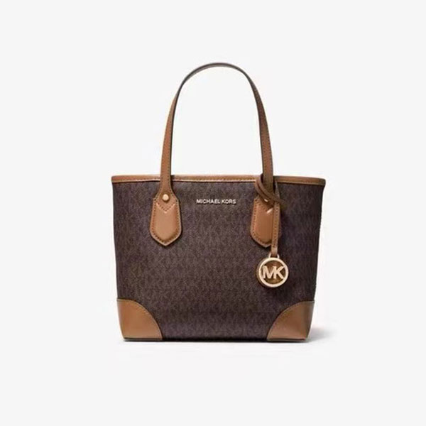 新款Michael Kors Eva 小號老花托特包,小巧精致,以品牌經典 Logo 印花斜紋布精心打造,兩側包角點綴順滑皮革飾邊,不同場合不同時間,總能輕松駕馭。MK 托特包配有大氣精致掛飾,寬敞的包內空間可以輕松容納您的隨身物品。無論是斜挎或是手提,為您的整體造型增添一抹亮色。