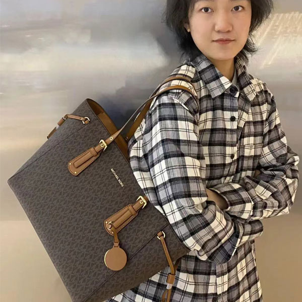 MICHAEL KORS MK Charlotte 大號托特包,是壹款兼具實用性與時尚感的手提單肩包,提供兩種經典色選擇,讓您輕鬆搭配各種服飾。此款mk 包包採用優質皮革製作,質感細膩且耐用,寬敞的內部設計提供充足空間,這合收納日常必需品、工作文件或購物物品。無論是手提還是單肩背負,都能輕鬆展現您的高雅品味,這合各種場合使用。間約而不失優雅,這款MK Charlotte大號托特包,無疑是您日常出街的必備單品。