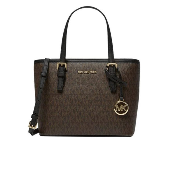 Jet Set女士托特包,是Michael Kors 經典款之一,採用頭層牛皮面料,硬挺有型且表面有細密的紋理,頂端拉鏈封口,包前一塊辨識度很高的MK logo銘牌,包身採用高質感的皮革與耐用材料,外觀簡約大方,內部空間合理,能容納日常必需品,實用又不失時尚感。無論是上班、出遊或約會,這款MK Jet Set 小號老花托特包都能讓您在各種場合中展現自信與品味。