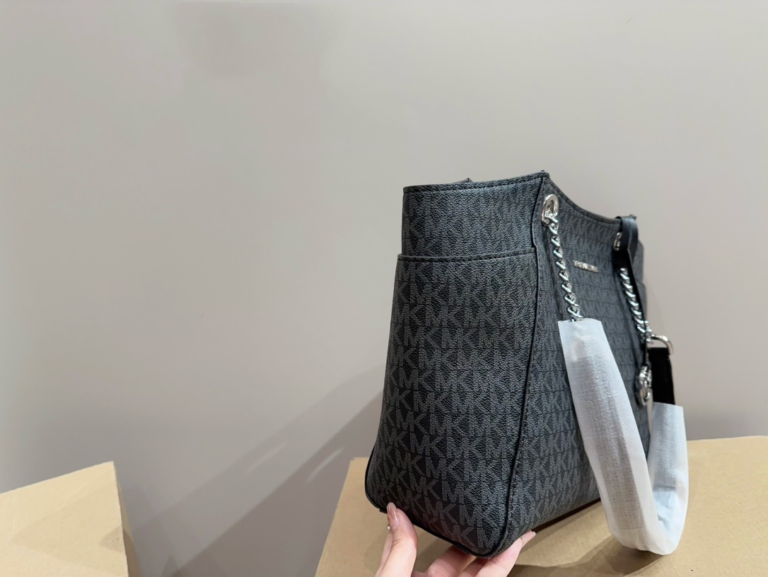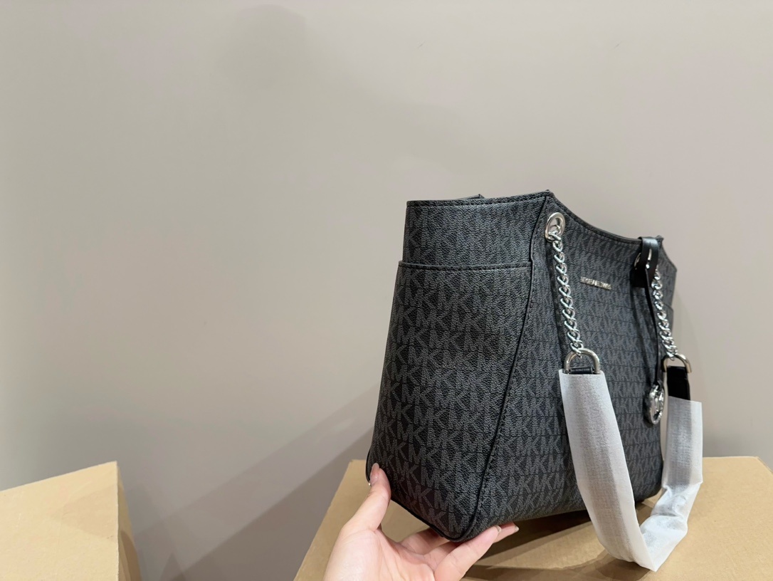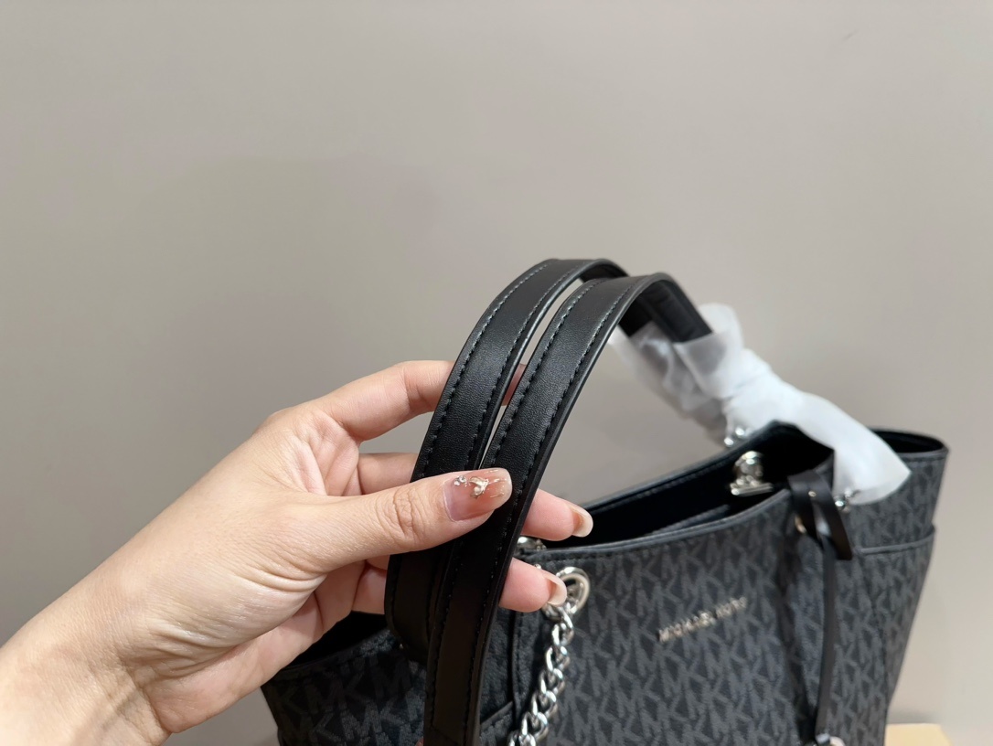 Michael Kors MK質感 托特包,以經典黑色為基調,展現出低調奢華的優雅風格。這款托特包選用高品質皮革材質,觸感柔軟且耐用,細節處精緻,打造出高端大氣的視覺效果。寬敞的內部空間設計,能夠輕鬆容納日常必需品,無論是上班、購物或是外出旅行,都能提供充足的收納空間。搭配簡約的金屬品牌標誌,增添整體設計的亮點,是一款集時尚與實用於一身的完美托特包。無論任何場合,mk 托特包都能彰顯出佩戴者的品味與格調。