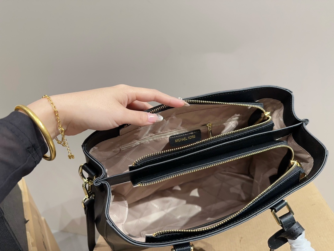 Michael Kors MK 便利實用托特包,融合了時尚與實用性,是現代女性的必備配件。經典的黑色設計,間潔大方,輕鬆搭配各種服飾,無論是上班還是休閒出行,都能展現您的獨特品味。mk 包身採用優質皮革,耐用且具質感,內部空間寬敞,方便收納手機、錢包、化妝品等日常用品,讓您隨時保持整潔有序。無論是旅行還是日常生活,這款托特包都能帶來極大的便利,讓您的穿搭更具時尚感與功能性。選擇這款MK 黑色托特包,展現間約而不失奢華的風格。