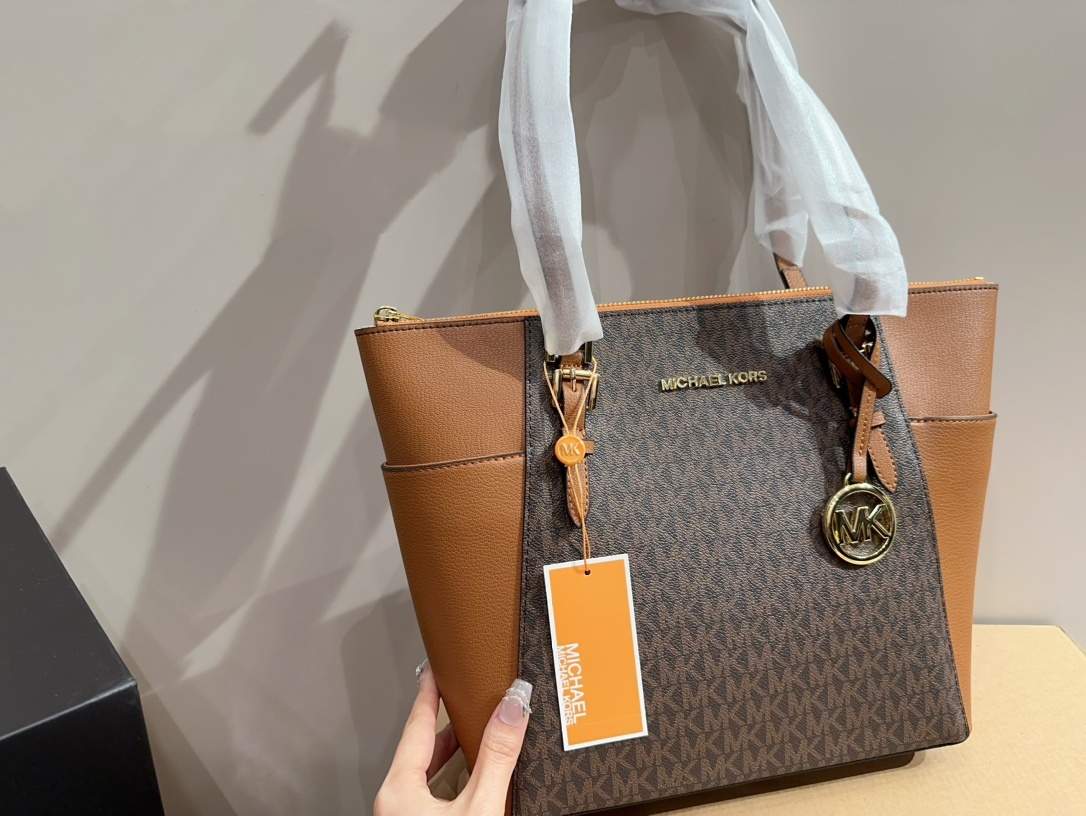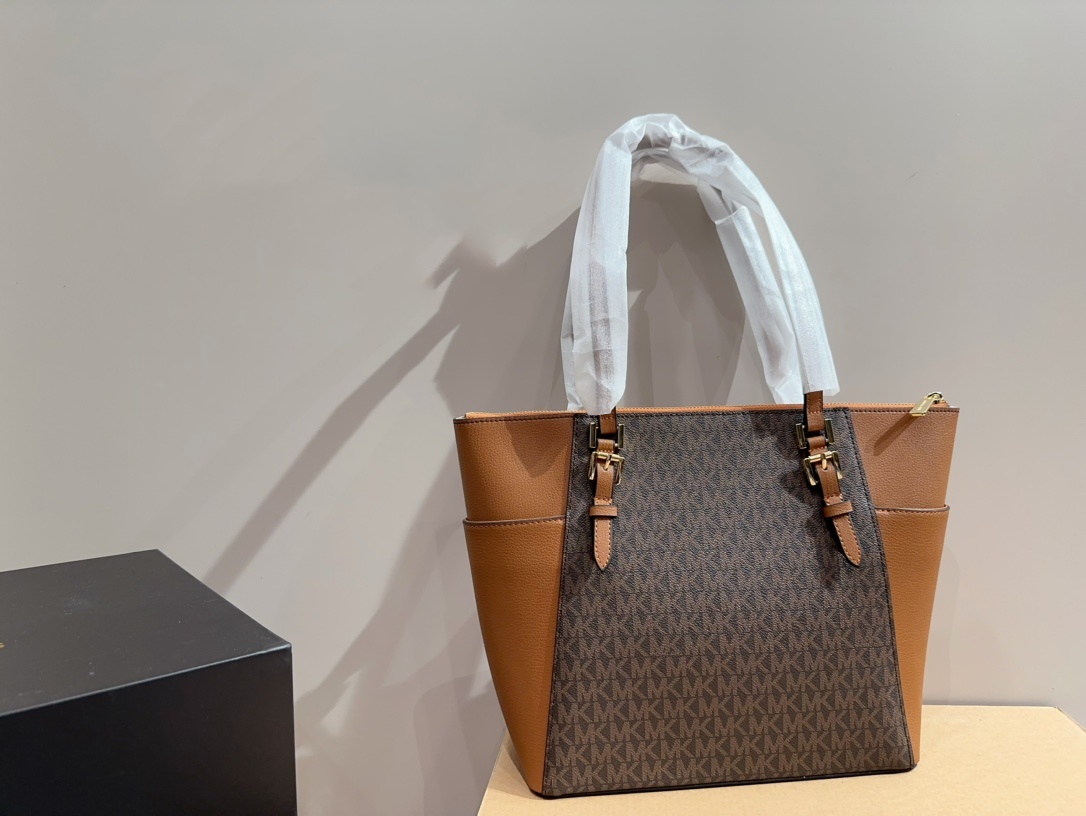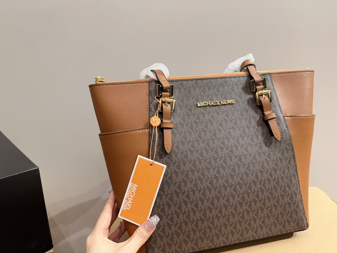 Michael Kors MK 高級時髦 Charlotte托特包,融合時尚與實用性,是現代女性的完美選擇。此款托特包採用高品質皮革,呈現優雅的棕色調,簡約而不失大氣,適合各種場合搭配。包身設計寬敞,內部空間充足,輕鬆容納日常所需物品如手機、錢包、化妝品等。其經典的MK金屬標誌,彰顯品牌高端品味,讓您無論是工作或休閒都能散發自信與優雅。無論是搭配正式或休閒穿著,Charlotte托特包都是您的完美夥伴。
