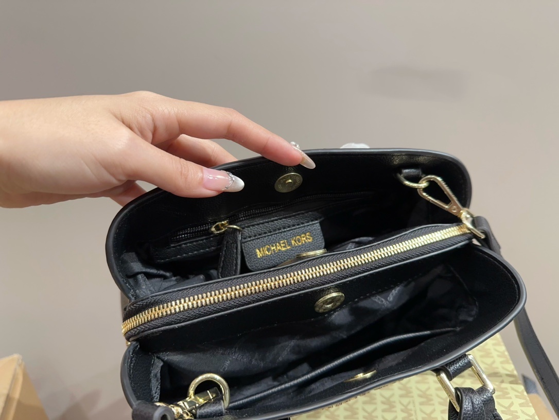 Michael Kors MK 時髦拿捏住啦殺手包,採用黑色皮革材質,展現出高貴典雅的質感。包包設計簡約卻不失奢華,搭配金色金屬細節,讓整體外觀更加搶眼。內部空間寬敞,能輕鬆收納日常必需品,並設有多個隔層,實用性十足。MK 殺手包結實的手柄和可調節的肩帶設計,無論是手提還是肩背,都能輕鬆搭配各種場合,無論是日常出行還是正式聚會,均能展現出佩戴者的品味與時尚感。這款mk 包包是對精緻生活的完美詮釋。