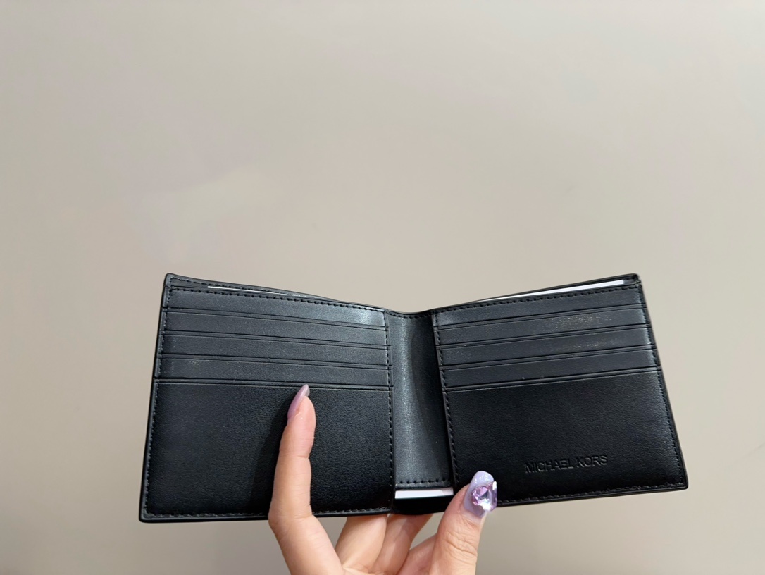 Michael Kors MK 黑色钱夹是品牌经典设计之一,通常采用高质量的皮革材质,质感柔软且耐用。其外观简约时尚,外部装饰有MK字母logo,突出品牌标识。内部设计注重实用性,通常配有多个卡位、钞票夹和零钱袋,方便存放信用卡、现金和其他小物品。mk 錢包适合日常使用,既能展现优雅的品味,也具备良好的功能性,适合各种场合搭配使用。